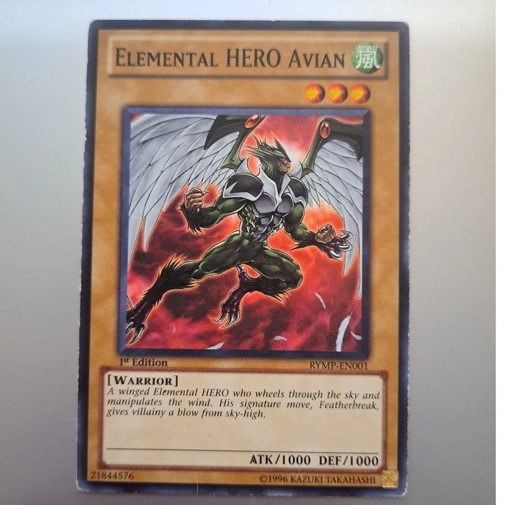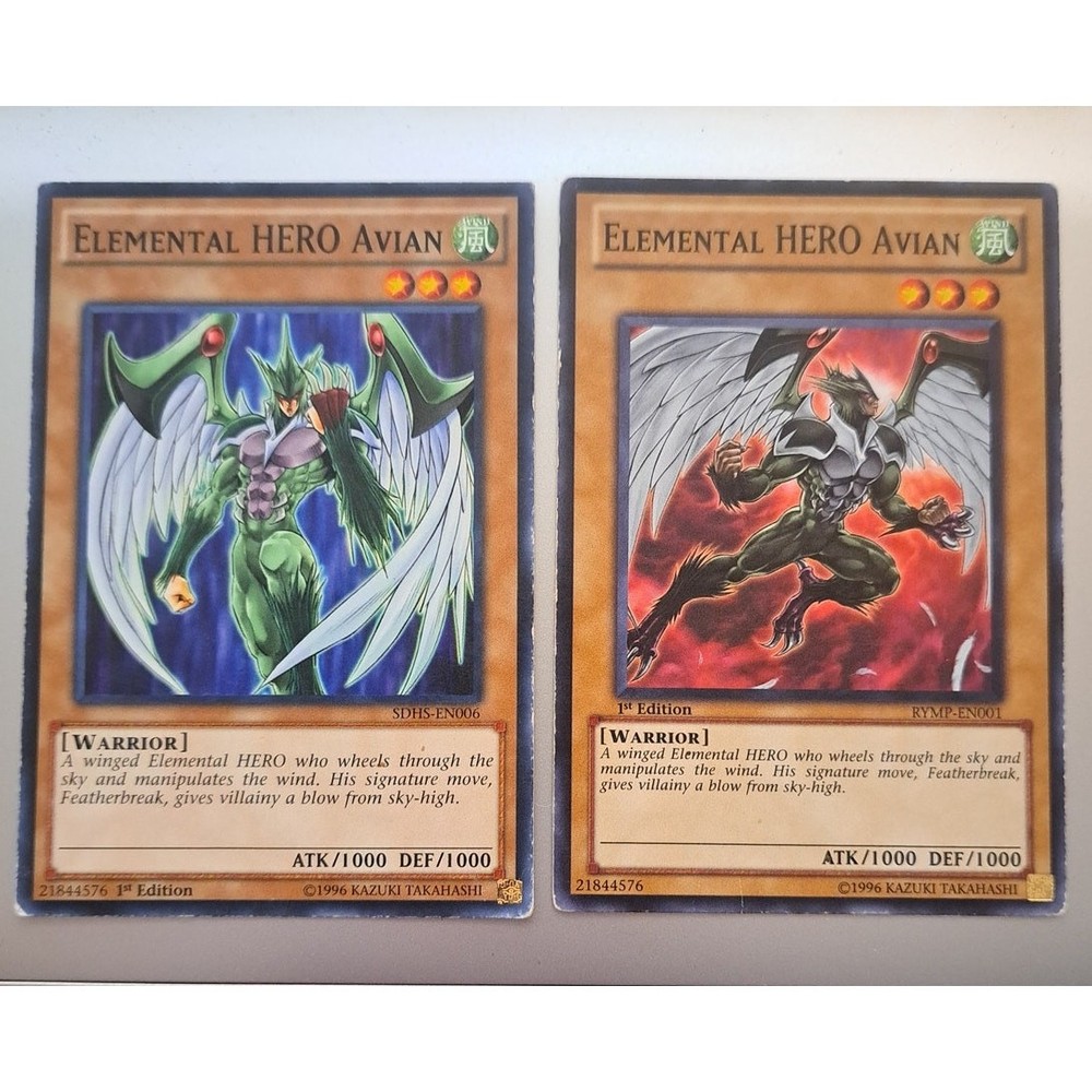 Got two awesome 1st Edition Elemental Hero Avian cards in great condition! Fast shipping and careful packaging - seller really takes care of their items. Super happy with this purchase, perfect for any Yu-Gi-Oh! collection. The photos were accurate, and everything arrived safely. Highly recommend if you're looking to add these to your deck!