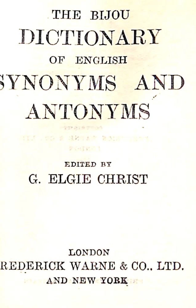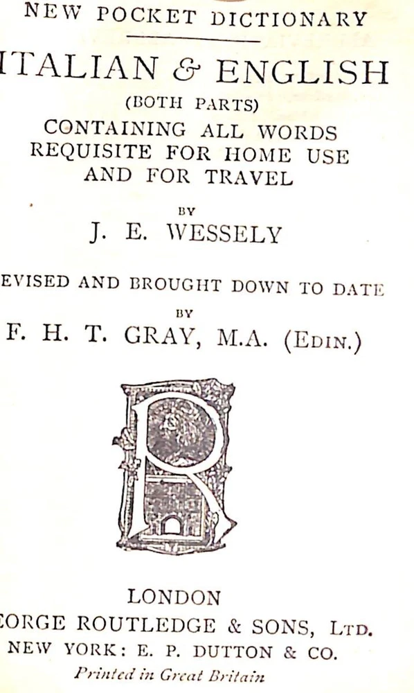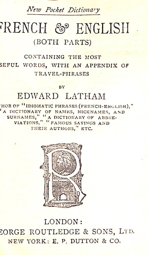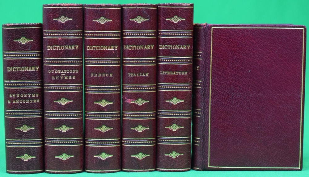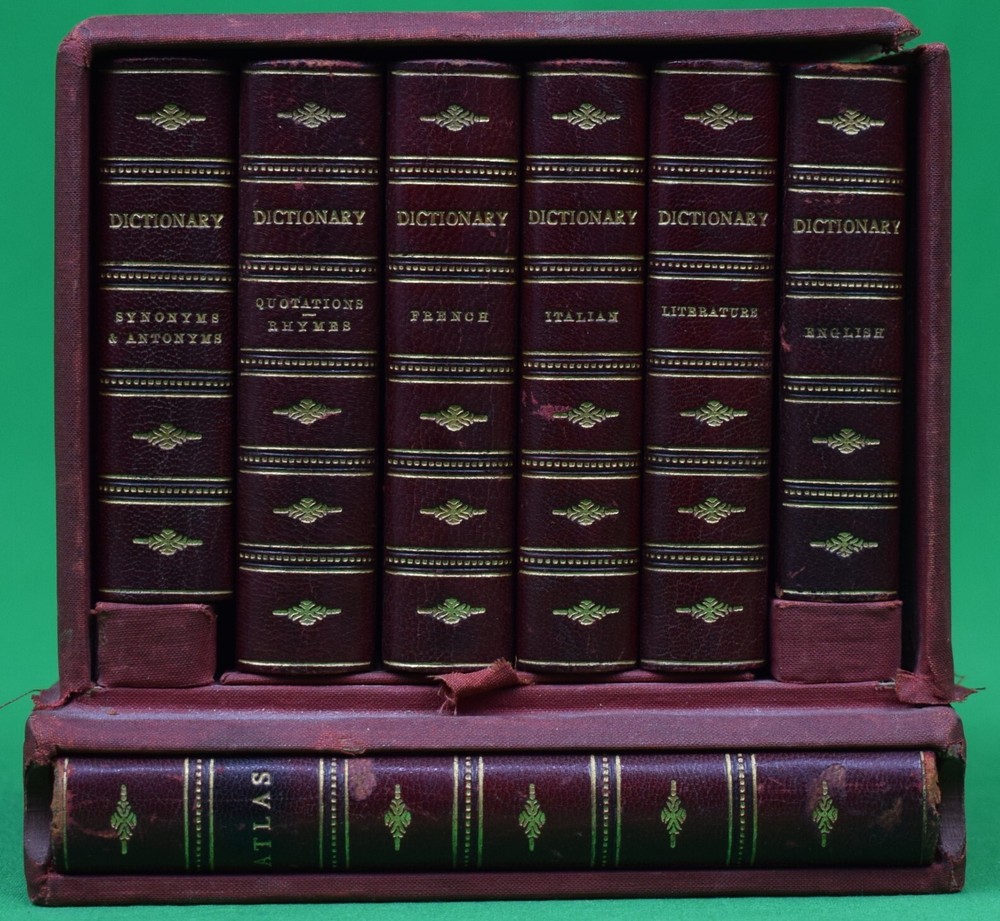 Together w/ three English-German and English-French dictionaries Rand McNally World Atlas Travel Edition [432] pp. 1931 5 7/8" x 3 3/4" George Routledge & Sons, Ltd., London The Bijou Dictionary Of English Synonyms & Antonyms CHRIST, G. Elegie [edited by] [750] pp. 1925 3 5/8" x 2 7/8" Dictionary Quotations-Rhymes ANSON, W.S.W. [222] pp. 4 1/8" x 3" Dictionary Italian & English WESSELY, J.E. [470] pp. 4 1/8" x 3" A Dictionary Of English Literature MCCROBEN, M. [115] pp. 4 1/8" x 3" Nuttall's Bijou Pronouncing Dictionary Of The English Language GORDON, W.J. [636] pp 1925 3 5/8" x 2 3/4" New Pocket Dictionary French & English (Both Parts) LATHAM, Edward [275] pp. 4 1/8" x 3" Bound by Sangorski & Sutcliffe London England Property from the Estate of Mary S. B. Braga *cloth case w/ seam split upper right corner*
