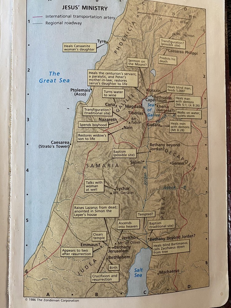 Soft cover leather like cover Bible NIV maps Zondervan 1973, 1978, 1994 has maps of Holy Land binding is a bit separated in areas