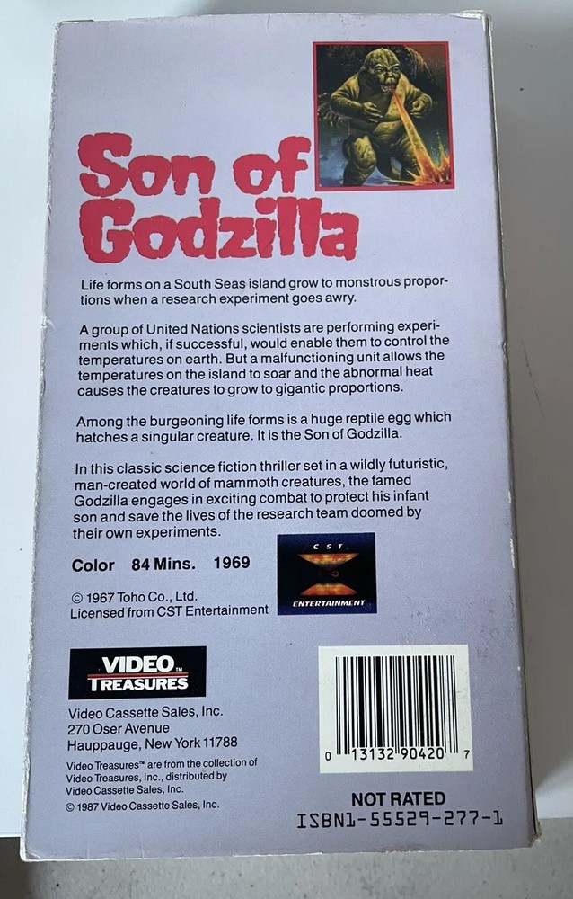 Son Of Godzilla 1969 Video Treasures VHS Tape 1987 Rare IGS vintage kaiju. Also Godzilla 2000 DVD