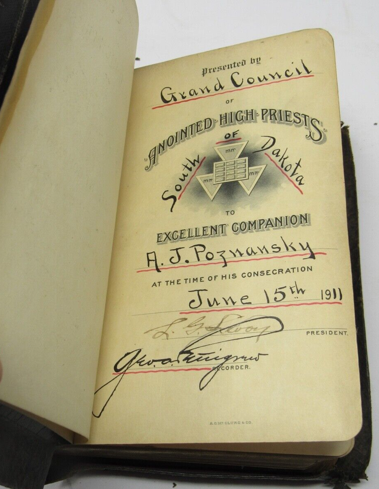 Sonomatreasures Presents for Your Consideration Original - Rare - Dated 1911 - Holy Bible - Anointed High Priests of South Dakota Please see pictures for condition. Additional pictures will be provided upon request. This item may be returned (minus shipping costs) if you are not completely satisfied - so bid with confidence. COMBINED SHIPPING AVAILABLE. No international shipping without prior approval. If you have any questions, please email me. CHECK OUT ARE OTHER ITEMS AT OUR SONOMATREASURES4U STORE - JUST CLICK THE " BLUE " DOOR ICON ABOVE.