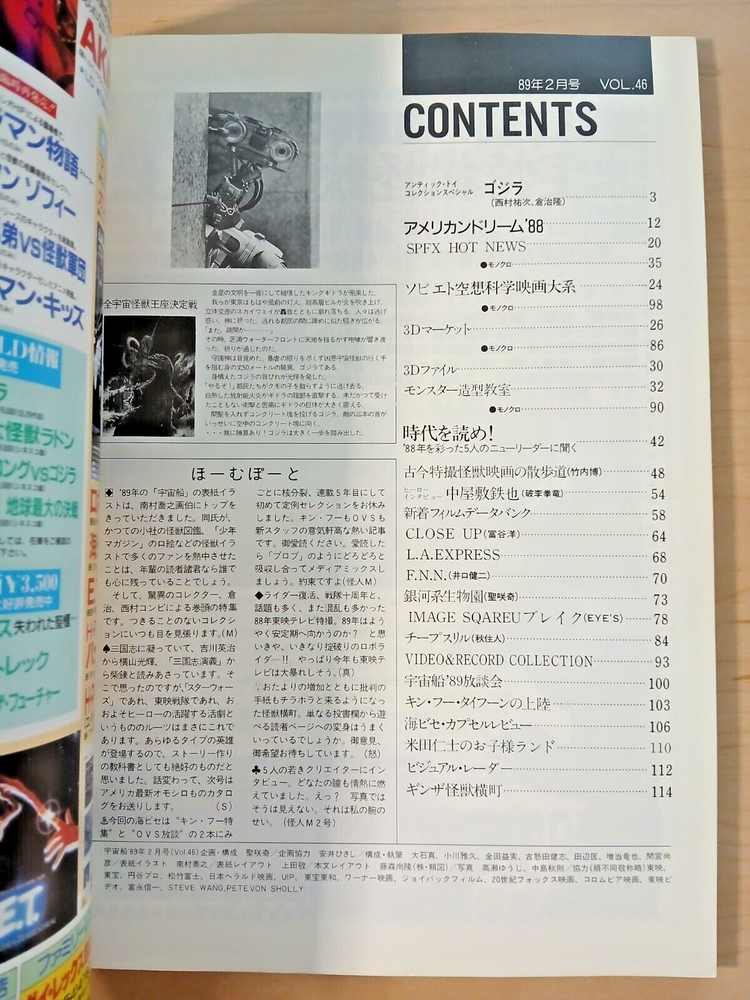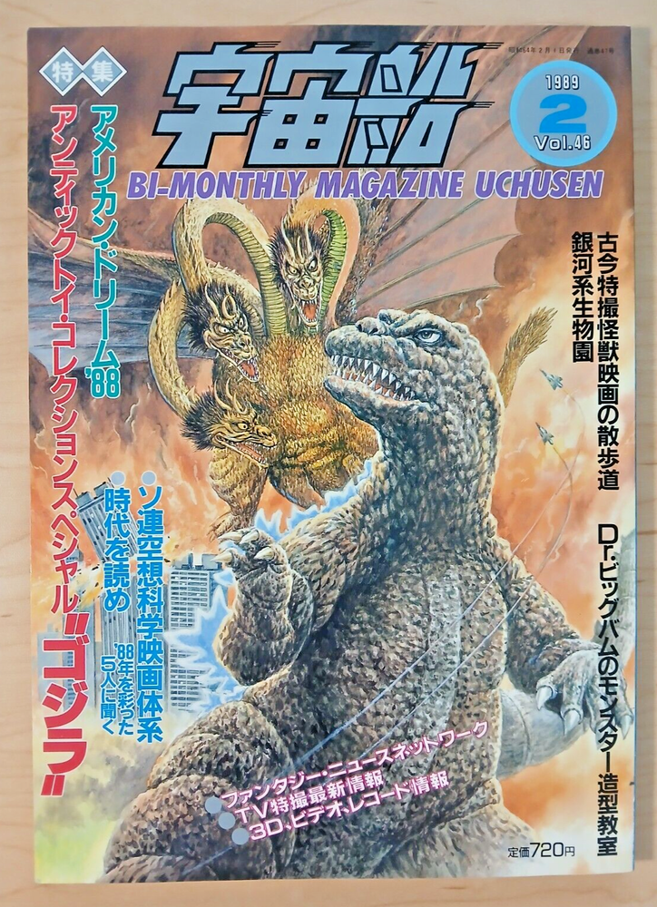 Space Magazine Uchusen Feb 1989 Japanese Sci-Fi Issue Featuring Godzilla vs King Ghidorah and Spaceships