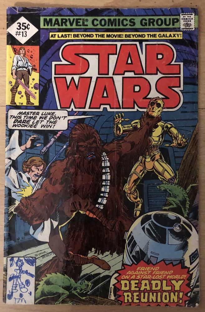 This vintage Star Wars comic is well-loved with visible wear like bends and scribbles, but the story is fully readable and intact—perfect for collectors who appreciate nostalgia over pristine condition. The interior holds up better than the covers, and while it’s not mint, it’s a fun piece for fans. Photos show the details clearly, so you know exactly what you’re getting. Great for a casual display or a budget-friendly addition to your collection!