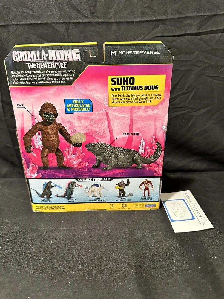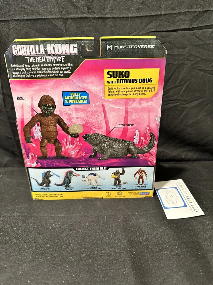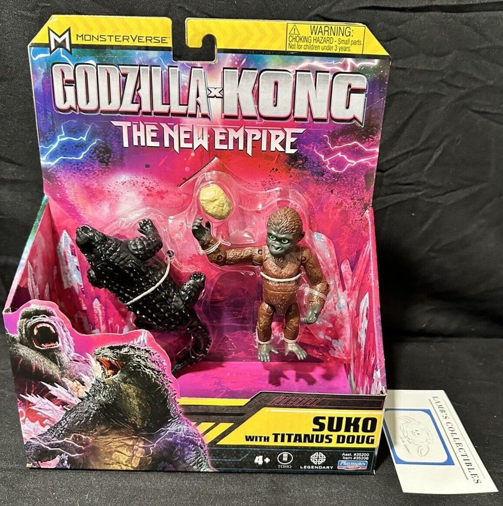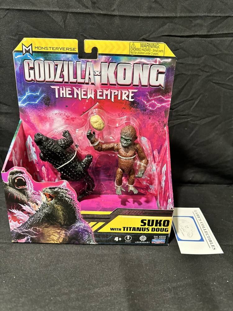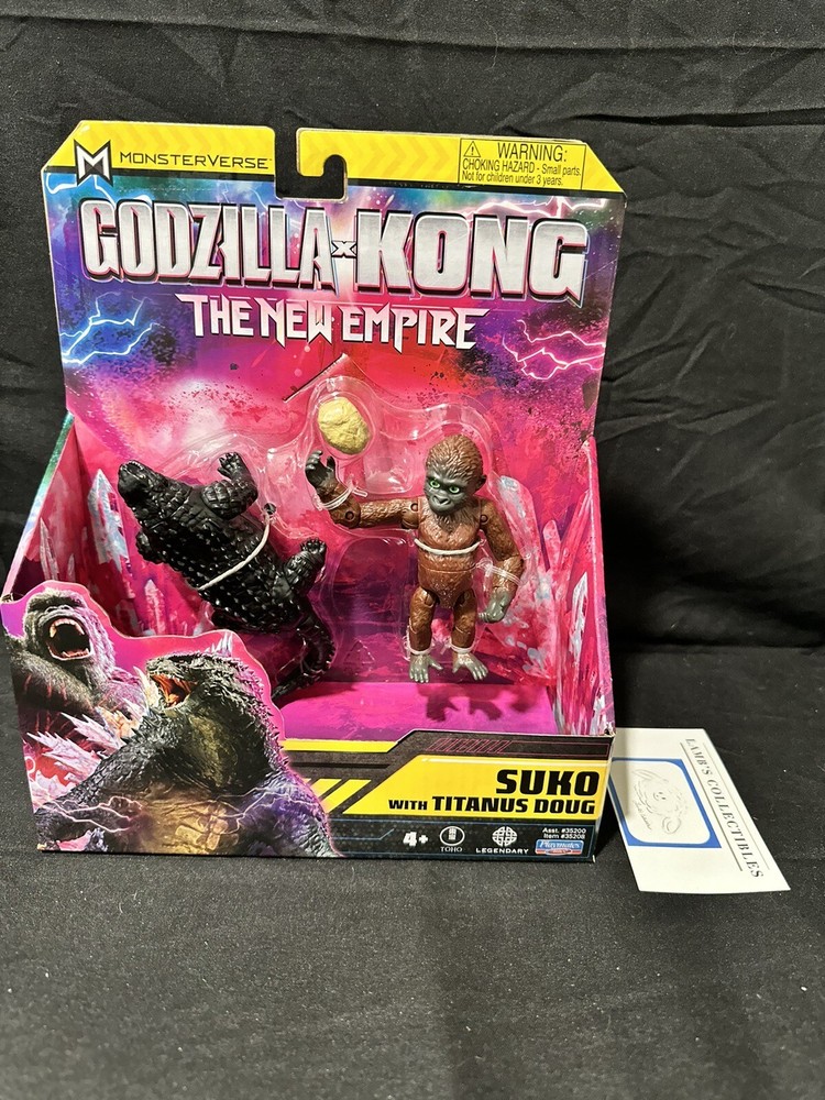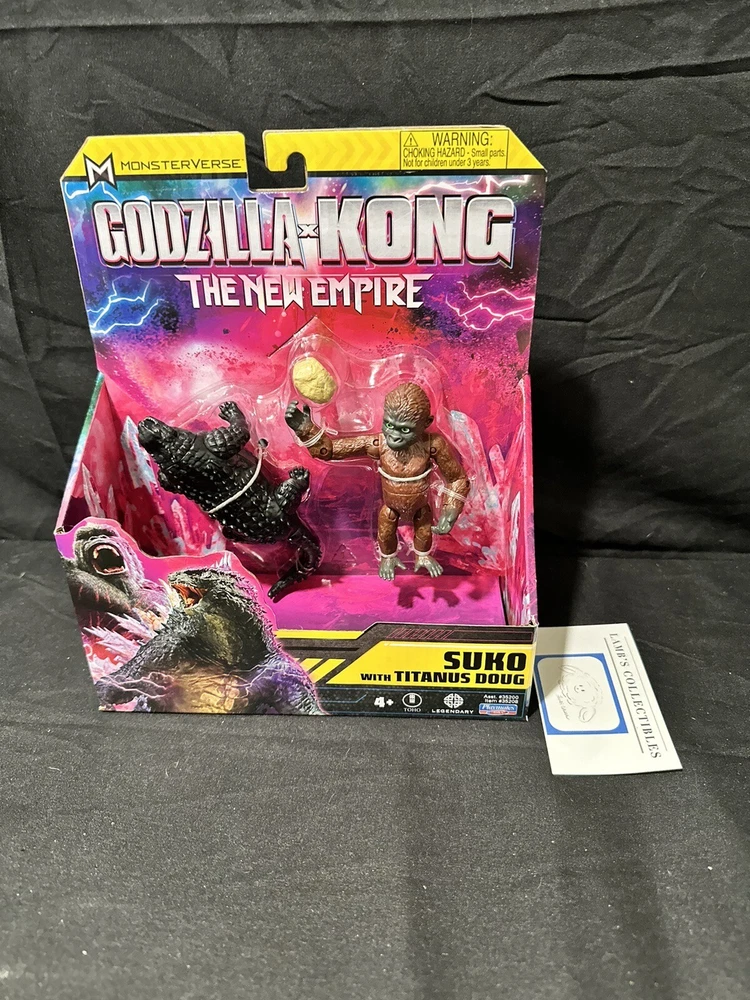 Suko with Titanus Doug Godzilla X Kong: The New Empire action figures set 4" this set of two action figures includes: one 4" tall Suko figure one 4" long Titanus Doug figure one rock accessory all measurements are approximate Please review all photos, policies & contact us with any questions. Thank You! Lamb’s Collectibles I nternational Buyers Import duties, taxes, & charges are not included in item price or shipping cost & are buyer's responsibility. Customers report packages arrive safely & quickly.