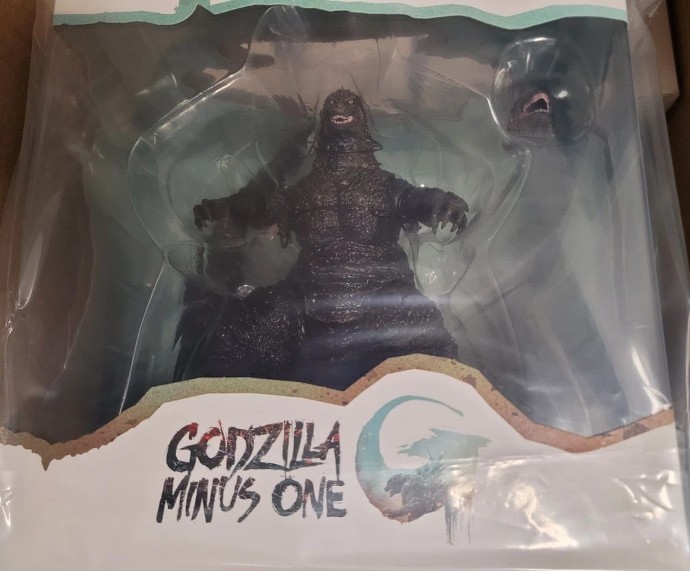 Based on the same 3D models used for the 2023 film Godzilla Minus One and approved by director Takashi Yamazaki for authenticity of its technical aspects, this highly-articulated Toho ULTIMATES! Godzilla Minus One figure measures over 8” tall and 14” long, features intricate sculpt and premium paint detailing, and comes with an interchangeable roaring head- all of which give it a visceral sense of power and danger! Comes new in the original box as pictured.