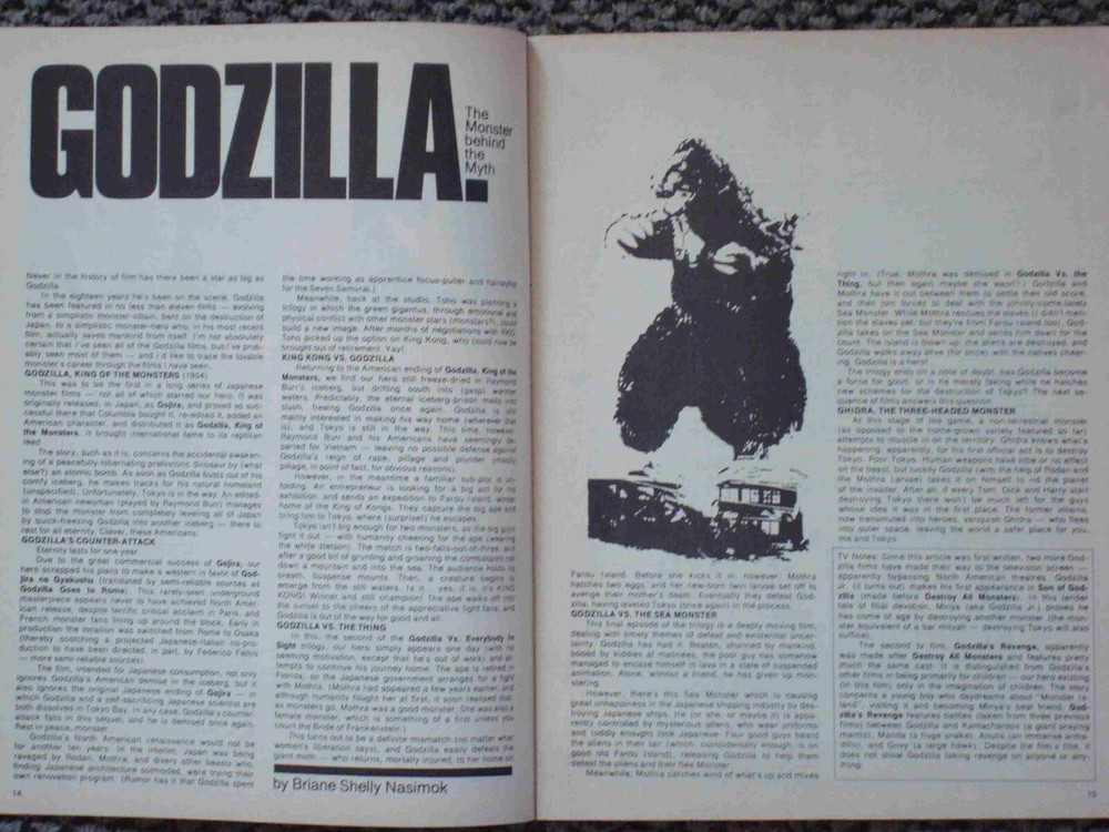TAKE ONE MAGAZINE, GODZILLA...THE MONSTER BEHIND THE MYTH COVER ART BY MICHAEL FOG, 1972, VOLUME 3, NUMBER 7, with features on D.W. Griffith; My Life and Times With The Chelsea Girls; Godzilla; Woody Allen; Gregory Peck; Wedding In White starring Carol Kane; all with black and white photos. Has 48 pages and measures approximately 8 inches by 11 inches. Front and back covers have slight wear, all other inside pages are complete, intact and In Mint Condition. Overall condition is Excellent Condition. GREAT GIFT! Neat Collectible Item. See Photo Image. Scanned Image is not as clear as original item. I ACCEPT PAYPAL. POSTAGE AND HANDLING IS for U.S.A. Delivery Only. Postal Insurance Is Option Of Buyer. Foreign Postage and handling is with Registered Mail Delivery and Customs Registration. I Am Not Responsible for Customs' fees or delivery delays. CHECK OUT MY OTHER AUCTIONS. THANKS. All auction items are in either used and sometimes still new condition. They can be used as research material, to adorn a wall or shelf as decoration, or appreciated for their entertainment memorabilia value. They are part of my personal and private collection which I have accumulated over the course of many years. They are placed up for bid and sold in AS IS condition with no returns, no exchanges and no refunds. I have enjoyed them immensely and I now hope that you can make them a part of your collection.