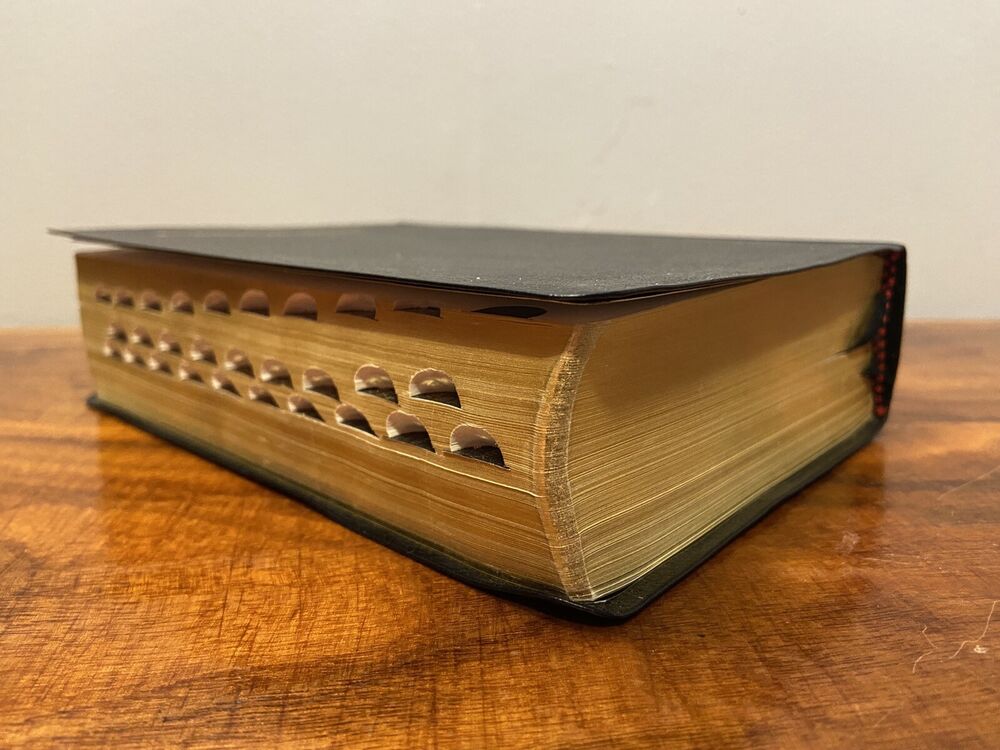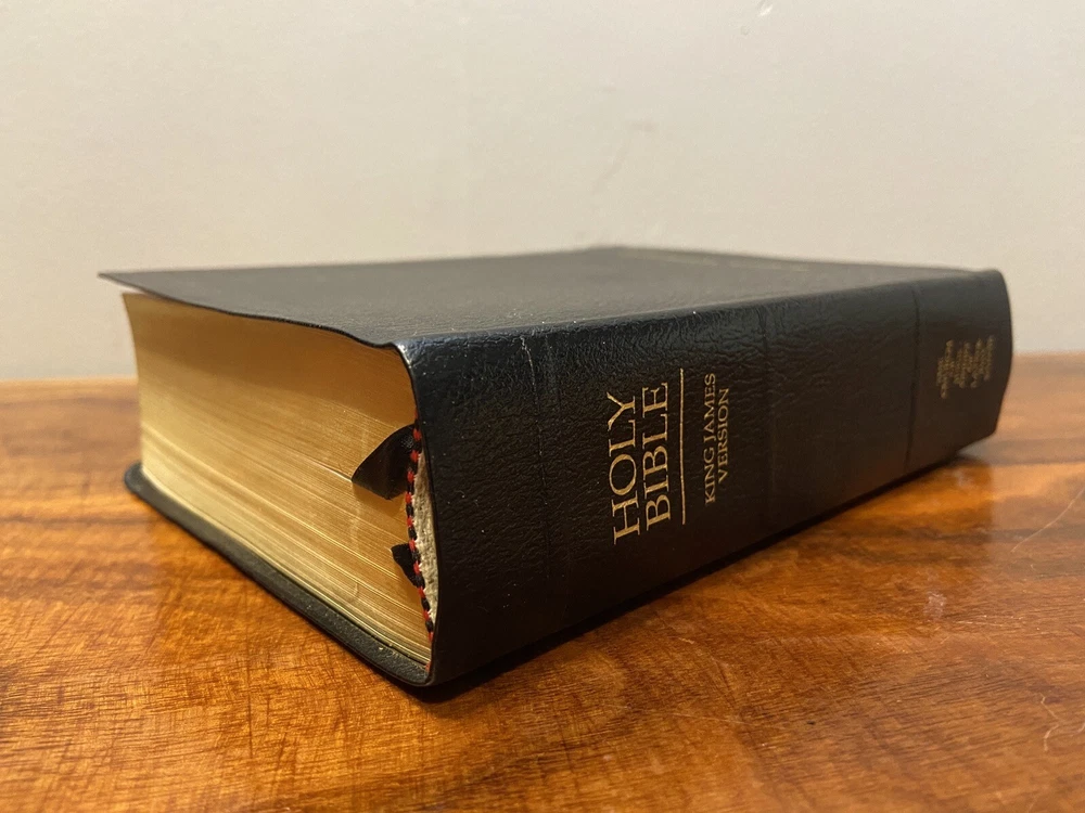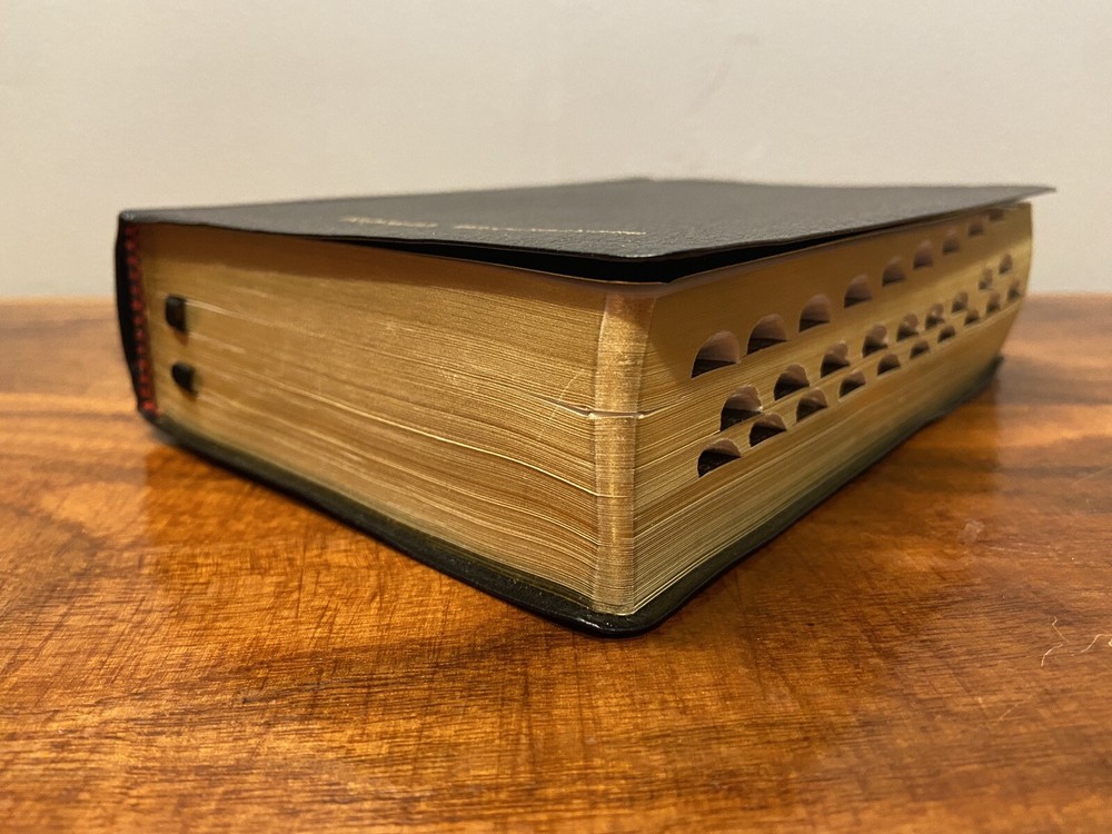 Like new condition! The pages are tabbed and have gold gilt edging, the cover is made of leather, and it has a ribbon bookmark. There is a name imprinted on the front cover. Please see the photos for any additional info. Thanks! I always package my items well and ship them quickly.