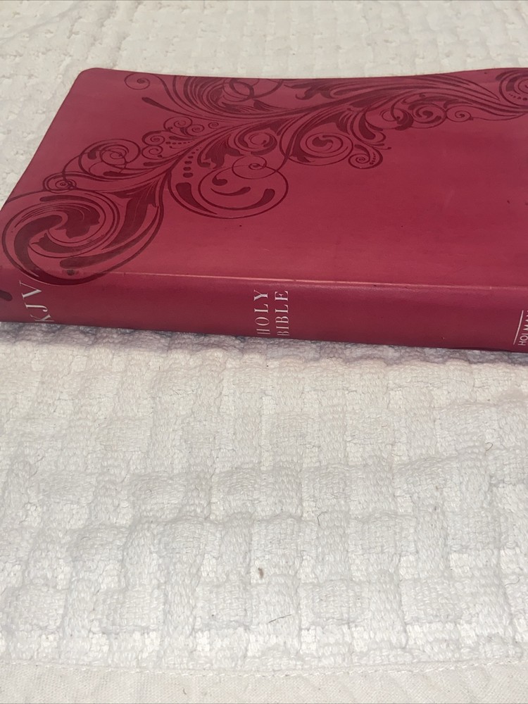 This beautiful pink faux leather KJV Bible from Holman is both elegant and practical! The soft cover feels great in hand, and the included maps add helpful context to scripture. Though mine had minor spots on the front, the print quality inside is excellent with clear text. Perfect for women who want a travel-friendly Bible that's sturdy yet stylish. The classic KJV translation makes it ideal for study and devotion. A lovely gift that combines faith with feminine charm!