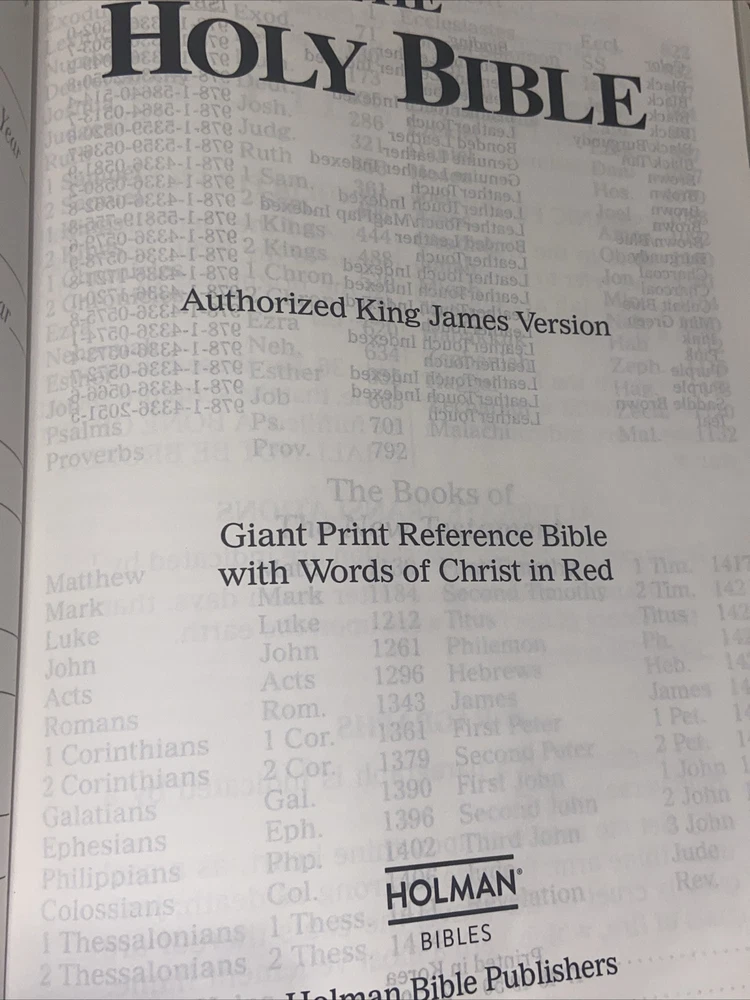 The product is a Faux Leather Bound edition of "The Holy Bible" published by Holman Bible Publishers in 2013. It is in English and contains a special attribute of a map. The book is titled "THE HOLY BIBLE KJV" and is in a pink cover. It is a Bible with a focus on religion and spirituality. See photos Contains spots in front cover
