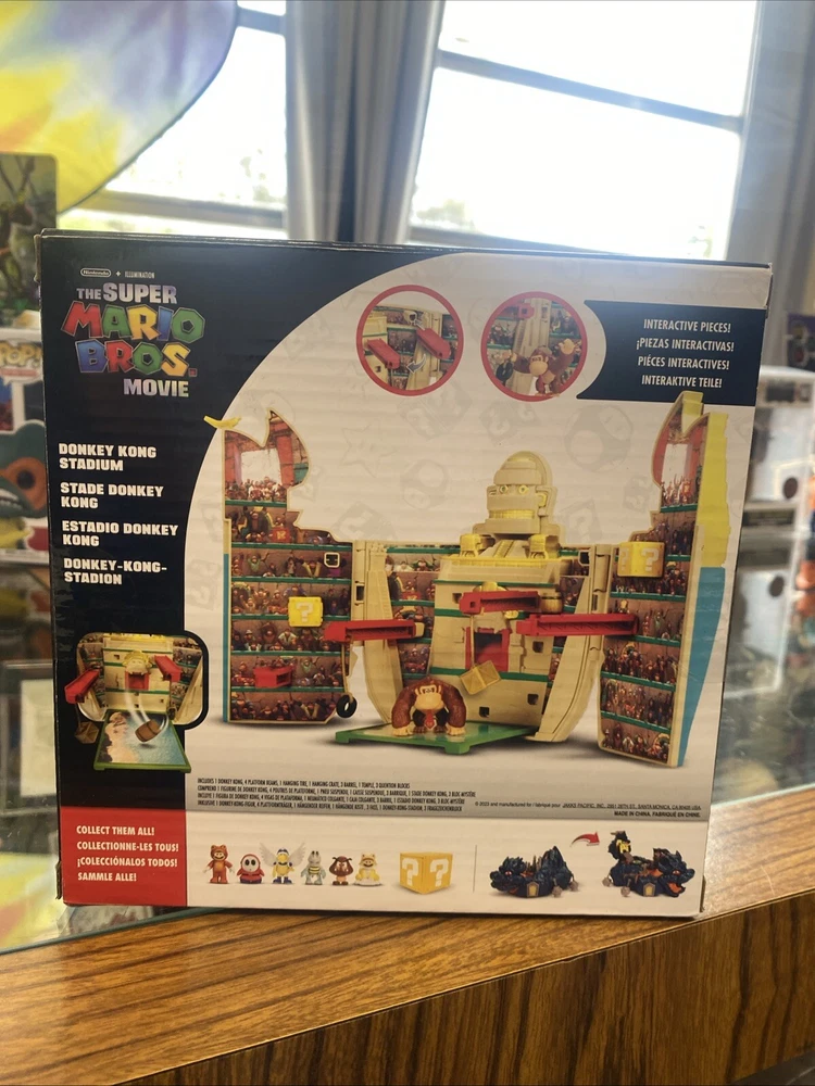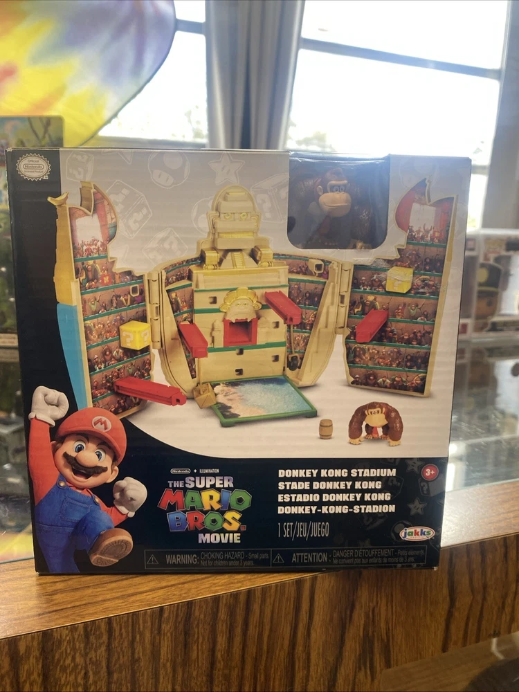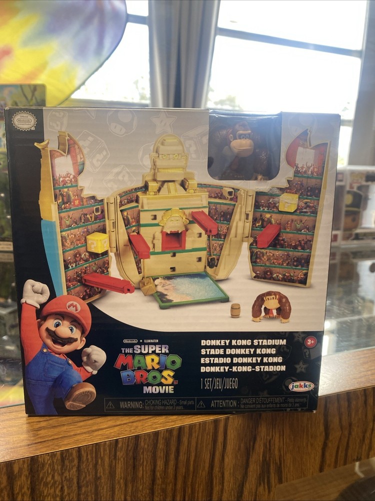 The product is a mini basic playset from the Super Mario Bros movie, featuring Donkey Kong. It was manufactured by Jakks Pacific Inc. in 2021 and is recommended for children aged 3 and up, with a year of manufacture of 2021. The product dimensions are 7.01 x 3.74 x 7.01 inches, and it weighs 0.035 ounces. The playset is part of the Mario Bros theme and is suitable for children aged 4-16 years.