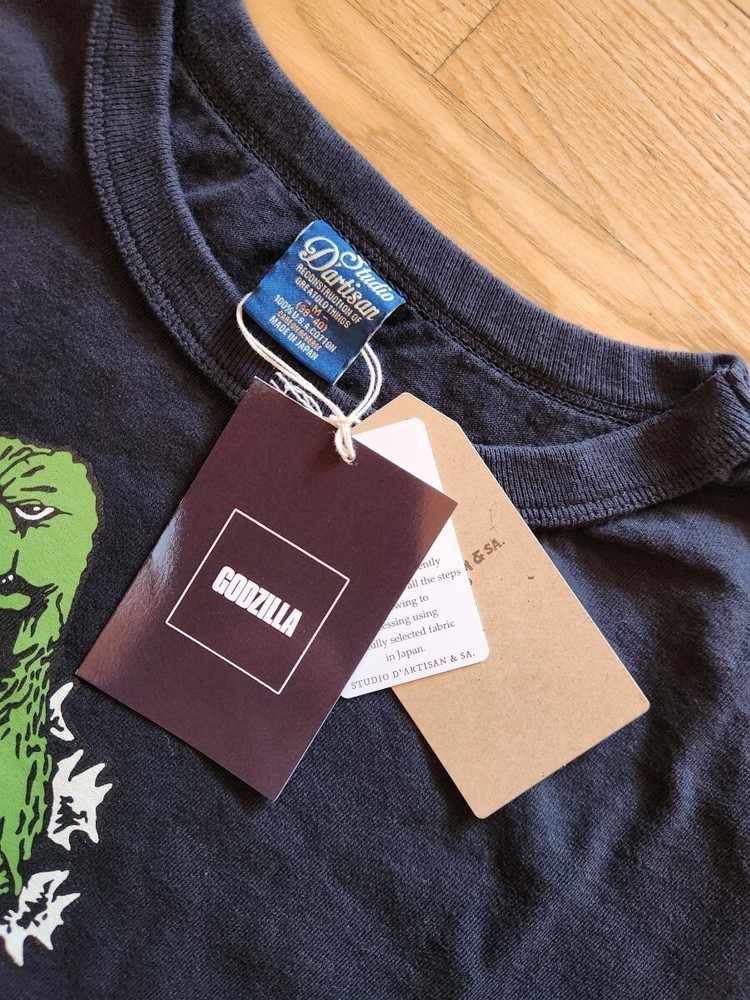 Warm greetings from Japan. Thank you very much for visiting our listing. This is STUDIO D'ARTISAN Studio D'artisan collaboration with Toho Film Company "GODZILLA" Heavyweight T-shirt. Quantity: 1 piece. Unused. Material: 100% cotton. Country of origin: Japan. Color: Black. Size: M Size. Width 52.5cm(20.6 inches.), Shoulder width 43.5cm (17.1 inches.), Length 64cm (25.1 inches.), Sleeve length 21.5cm (8.4 inches.) Printed T-shirt made with American cotton. This classic T-shirt is characterized by its firm and resilient texture and is well-known for its long life. Godzilla sewing jeans with a sewing machine One-washed. Please inspect pictures for condition reference. We update our inventory every 24 hours, However, some items may sell locally in between and we may need to cancel the order. Please confirm availability before buying. CAUTION: Import TAXES (VAT),and duties are responsibility of buyers.
