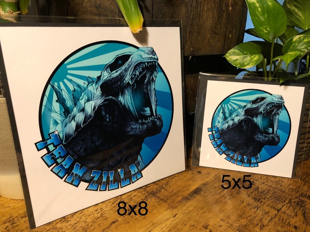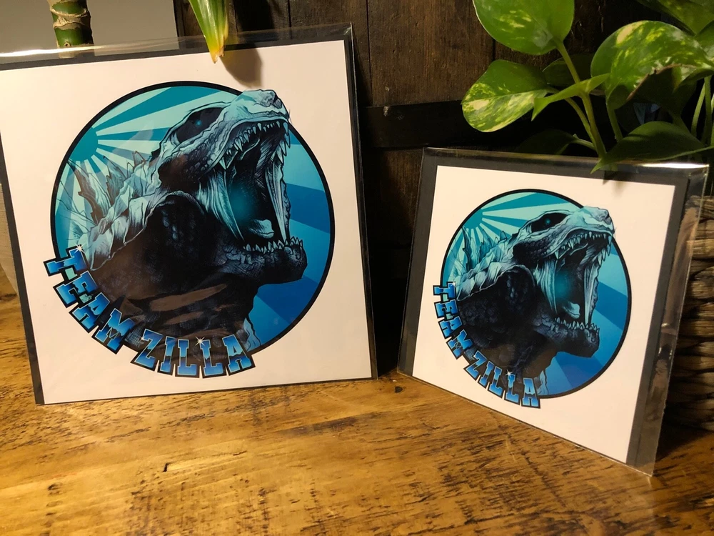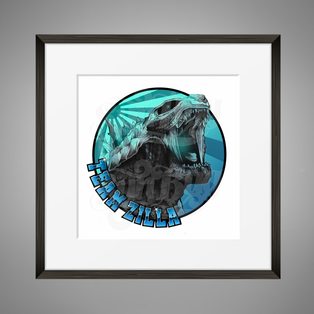 TEAM ZILLA THE DESIGN: Team Zilla. An image inspired by the new Godzilla v Kong film. The illustration was drawn using pencil and black biro with some colour added later. Who's team are you on? Prints come printed without SunBug Watermark SIZES: FRAMES ARE NOT INCLUDED MOUNTS ARE NOT INCLUDED This listing is for a print available in a range of sizes... 5 x 5 inches 8 x 8 inches 11 x 11 inches For any other specific sizes please message me and I will do my best to accommodate. THE PRINT: Printed on Premium 250gsm Professional Satin paper. This paper is thick, durable, and has archival qualities to help preserve image quality. The combination of the satin paper, quality inks and top of the range Epsom printer all help to produce a stunning, crisp print with a pearlescent sheen. To preserve colours, prints are best displayed out of direct sunlight and behind glass. Actual colours may vary slightly due to monitor settings. POSTING: Prints up to 8 x 8size are posted using hard backed envelopes with extra reinforcement card around the print. They are sealed in a waterproof cellophane bag for extra protection. Large 11 x 11 prints will be rolled and posted in a sturdy postage tube. Again the print inside will be protected in cellophane. Postage is FREE for all UK addresses.