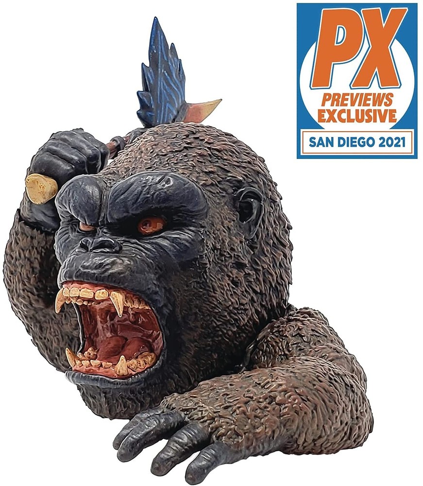 Smashing its way through your nearest toy shelf, this San Diego Exclusive Kong soft vinyl toy is read to head into battle against his oldest foe, Godzilla! Standing about 3.3" tall, this PREVIEWS Exclusive Kong figure features a fun stylized look, amazing detail and a swappable fist and battle axe, you can pit this awesome, limited edition Kong against the Godzilla soft vinyl figure (sold separately) and declare the the winner! Limited to 1500 Pieces. A San Diego Comic-Con 2021 exclusive Fun, stylized look with amazing detail Swappable fist and battle axe Stands about 3.3" tall Limited to 1,500 pieces