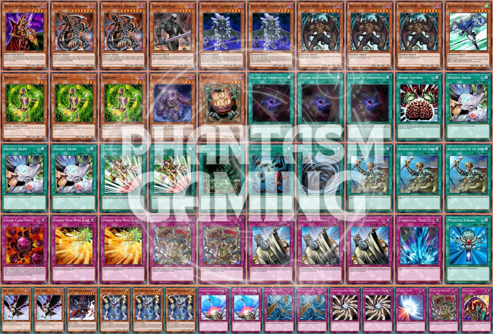 Deck Name: TeleDAD (TeleDAD) (C) # Main Deck (40) 1 - Breaker the Magical Warrior 2 - Dark Armed Dragon 1 - Dark Grepher 2 - Destiny HERO - Diamond Dude 3 - Destiny HERO - Malicious 1 - Elemental HERO Stratos 3 - Krebons 1 - Plaguespreader Zombie 1 - Sangan 3 - Allure of Darkness 1 - Brain Control 3 - Destiny Draw 2 - Emergency Teleport 1 - Giant Trunade 1 - Heavy Storm 1 - Monster Reborn 1 - Mystical Space Typhoon 3 - Reinforcement of the Army 1 - Crush Card Virus 2 - Phoenix Wing Wind Blast 2 - Royal Oppression 3 - Solemn Judgment 1 - Torrential Tribute # Side Deck (15) 2 - D.D. Crow 1 - Gorz the Emissary of Darkness 3 - Thunder King Rai-Oh 2 - Compulsory Evacuation Device 2 - Dust Tornado 2 - Light-Imprisoning Mirror 1 - Mirror Force 1 - Royal Oppression 1 - Skill Drain You will receive all of the following cards listed above. Most cards will will be in near mint condition. In the case of certain older cards we will do our best but some cards may be light or even moderatly played in extreme condtions. Those conditions being the card has not been reprinted in a number of years and con no longer be easily purchased in light or near mint condition. Set, Rarity, and Edition will vary and cannot be special requested. These lists are constructed with least expensive rarities we have available in stock. All cards are play legal copies. Note: If purchasing a Yugioh Deck all Speed duel cards are 100% legal at all levels of play. Store Policies Here at PMG_LLC , we pride ourselves on having the best customer service around. If you have any questions or can't seem to find something that you want please do not hesitate to contact us. We will do our best to respond to all questions within one business day. Hours of Operation: Monday-Friday: 2:30pm - 10:00pm Saturday- 10:00am - 8:00pm Sunday 11:00am - 5:30pm Note: We are closed all national holidays. Info: Thank you for choosing PMG_LLC . We appreciate your business. We ship Monday through Friday to make sure you get your deck as quickly as possible. All orders priority orders can use combined shipping. In order to use the combined shipping your whole purchase needs to be checked out as one order. We ship once we have received your payment and payment has cleared. As always if you have any questions or concerns please feel free to contact us via email. Shipping Information: We ship Monday through Friday, barring national holidays during which the United States Postal Service is closed. If you purchase a card on Friday or Saturday please bear in mind it will not ship until Monday. US Shipping: First Class Mail : Free. Comes with tracking information. Priority Mail with Delivery Confirmation : $9.99 All orders are shipped in appropriate protective material inside bubble mailers. International Shipping: We do not offer international Shipping Return Policy: You must return items sold and fulfilled by PMG_LLC within 30 days of delivery to be eligible for a refund. Returns which are damaged in the mail due to improper return packaging will receive partial refunds. We will process a full refund for all items returned in their original condition. In order for us to process your full refund you must include the full name associated with the order as well as the eBay order number inside the return packaging. We will not process returns which do not include the buyer's name and order number. Requirements: Please return items with the original plastic packaging. Failure to do so may result in a partial refund. Also you must inform us of any returns you may wish to process before sending them back. Any items simply send back to us without prior contact will not be eligible for refunds. Important Notes Remember that to benefit from our domestic combined shipping on priority orders you must to pay in a single payment. If you place two separate priority orders you will be charged the $7.50 shipping fee for both orders. If you place multiple orders for Priority shipping you will be charged the corresponding shipping costs for each order, even if you place the orders on the same day. We do not refund shipping costs as we tend to package orders throughout the day and may not notice that you would otherwise have qualified for combined shipping. We want to provide you with 5 Star service and earn your Positive Feedback, so if for any reason you are not happy with your transaction, contact us before leaving feedback. Business Day - Our business day runs from Monday to Friday from 9am to 4pm, excluding US national holidays. Any orders placed or payments cleared less than 4 hours before the close of business will be considered orders from the following business day.