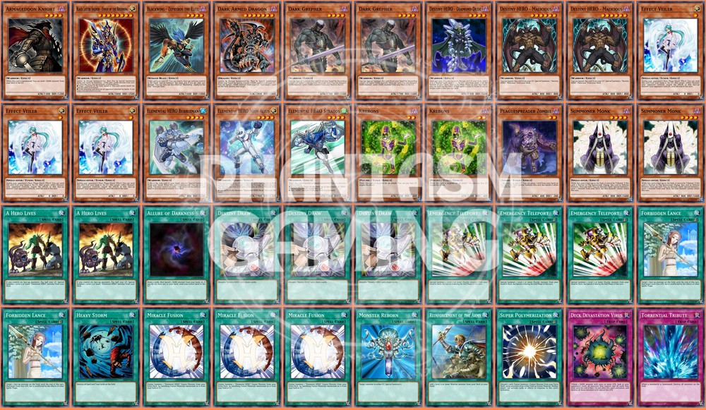 Deck Name: TeleDaD (A) (Wind-Up) # Main Deck (40) 1 - Armageddon Knight 1 - Black Luster Soldier - Envoy of the Beginning 1 - Blackwing - Zephyros the Elite 1 - Dark Armed Dragon 2 - Dark Grepher 1 - Destiny HERO - Diamond Dude 2 - Destiny HERO - Malicious 3 - Effect Veiler 1 - Elemental HERO Bubbleman 1 - Elemental HERO Neos Alius 1 - Elemental HERO Stratos 2 - Krebons 1 - Plaguespreader Zombie 2 - Summoner Monk 2 - A Hero Lives 1 - Allure of Darkness 3 - Destiny Draw 3 - Emergency Teleport 2 - Forbidden Lance 1 - Heavy Storm 3 - Miracle Fusion 1 - Monster Reborn 1 - Reinforcement of the Army 1 - Super Polymerization 1 - Deck Devastation Virus 1 - Torrential Tribute You will receive all of the following cards listed above. Most cards will will be in near mint condition. In the case of certain older cards we will do our best but some cards may be light or even moderatly played in extreme condtions. Those conditions being the card has not been reprinted in a number of years and con no longer be easily purchased in light or near mint condition. Set, Rarity, and Edition will vary and cannot be special requested. These lists are constructed with least expensive rarities we have available in stock. All cards are play legal copies. Note: If purchasing a Yugioh Deck all Speed duel cards are 100% legal at all levels of play. Store Policies Here at PMG_LLC , we pride ourselves on having the best customer service around. If you have any questions or can't seem to find something that you want please do not hesitate to contact us. We will do our best to respond to all questions within one business day. Hours of Operation: Monday-Friday: 2:30pm - 10:00pm Saturday- 10:00am - 8:00pm Sunday 11:00am - 5:30pm Note: We are closed all national holidays. Info: Thank you for choosing PMG_LLC . We appreciate your business. We ship Monday through Friday to make sure you get your deck as quickly as possible. All orders priority orders can use combined shipping. In order to use the combined shipping your whole purchase needs to be checked out as one order. We ship once we have received your payment and payment has cleared. As always if you have any questions or concerns please feel free to contact us via email. Shipping Information: We ship Monday through Friday, barring national holidays during which the United States Postal Service is closed. If you purchase a card on Friday or Saturday please bear in mind it will not ship until Monday. US Shipping: First Class Mail : Free. Comes with tracking information. Priority Mail with Delivery Confirmation : $9.99 All orders are shipped in appropriate protective material inside bubble mailers. International Shipping: We do not offer international Shipping Return Policy: You must return items sold and fulfilled by PMG_LLC within 30 days of delivery to be eligible for a refund. Returns which are damaged in the mail due to improper return packaging will receive partial refunds. We will process a full refund for all items returned in their original condition. In order for us to process your full refund you must include the full name associated with the order as well as the eBay order number inside the return packaging. We will not process returns which do not include the buyer's name and order number. Requirements: Please return items with the original plastic packaging. Failure to do so may result in a partial refund. Also you must inform us of any returns you may wish to process before sending them back. Any items simply send back to us without prior contact will not be eligible for refunds. Important Notes Remember that to benefit from our domestic combined shipping on priority orders you must to pay in a single payment. If you place two separate priority orders you will be charged the $7.50 shipping fee for both orders. If you place multiple orders for Priority shipping you will be charged the corresponding shipping costs for each order, even if you place the orders on the same day. We do not refund shipping costs as we tend to package orders throughout the day and may not notice that you would otherwise have qualified for combined shipping. We want to provide you with 5 Star service and earn your Positive Feedback, so if for any reason you are not happy with your transaction, contact us before leaving feedback. Business Day - Our business day runs from Monday to Friday from 9am to 4pm, excluding US national holidays. Any orders placed or payments cleared less than 4 hours before the close of business will be considered orders from the following business day.