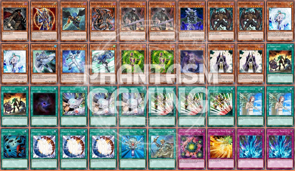 Deck Name: TeleDaD (B) (Wind-Up) # Main Deck (40) 1 - Armageddon Knight 1 - Black Luster Soldier - Envoy of the Beginning 1 - Blackwing - Zephyros the Elite 1 - Dark Armed Dragon 2 - Dark Grepher 1 - Destiny HERO - Diamond Dude 2 - Destiny HERO - Malicious 2 - Effect Veiler 1 - Elemental HERO Bubbleman 1 - Elemental HERO Neos Alius 1 - Elemental HERO Stratos 2 - Krebons 1 - Plaguespreader Zombie 2 - Summoner Monk 2 - A Hero Lives 1 - Allure of Darkness 3 - Destiny Draw 3 - Emergency Teleport 2 - Forbidden Lance 1 - Heavy Storm 3 - Miracle Fusion 1 - Monster Reborn 1 - Reinforcement of the Army 1 - Deck Devastation Virus 1 - Phoenix Wing Wind Blast 2 - Torrential Tribute You will receive all of the following cards listed above. Most cards will will be in near mint condition. In the case of certain older cards we will do our best but some cards may be light or even moderatly played in extreme condtions. Those conditions being the card has not been reprinted in a number of years and con no longer be easily purchased in light or near mint condition. Set, Rarity, and Edition will vary and cannot be special requested. These lists are constructed with least expensive rarities we have available in stock. All cards are play legal copies. Note: If purchasing a Yugioh Deck all Speed duel cards are 100% legal at all levels of play. Store Policies Here at PMG_LLC , we pride ourselves on having the best customer service around. If you have any questions or can't seem to find something that you want please do not hesitate to contact us. We will do our best to respond to all questions within one business day. Hours of Operation: Monday-Friday: 2:30pm - 10:00pm Saturday- 10:00am - 8:00pm Sunday 11:00am - 5:30pm Note: We are closed all national holidays. Info: Thank you for choosing PMG_LLC . We appreciate your business. We ship Monday through Friday to make sure you get your deck as quickly as possible. All orders priority orders can use combined shipping. In order to use the combined shipping your whole purchase needs to be checked out as one order. We ship once we have received your payment and payment has cleared. As always if you have any questions or concerns please feel free to contact us via email. Shipping Information: We ship Monday through Friday, barring national holidays during which the United States Postal Service is closed. If you purchase a card on Friday or Saturday please bear in mind it will not ship until Monday. US Shipping: First Class Mail : Free. Comes with tracking information. Priority Mail with Delivery Confirmation : $9.99 All orders are shipped in appropriate protective material inside bubble mailers. International Shipping: We do not offer international Shipping Return Policy: You must return items sold and fulfilled by PMG_LLC within 30 days of delivery to be eligible for a refund. Returns which are damaged in the mail due to improper return packaging will receive partial refunds. We will process a full refund for all items returned in their original condition. In order for us to process your full refund you must include the full name associated with the order as well as the eBay order number inside the return packaging. We will not process returns which do not include the buyer's name and order number. Requirements: Please return items with the original plastic packaging. Failure to do so may result in a partial refund. Also you must inform us of any returns you may wish to process before sending them back. Any items simply send back to us without prior contact will not be eligible for refunds. Important Notes Remember that to benefit from our domestic combined shipping on priority orders you must to pay in a single payment. If you place two separate priority orders you will be charged the $7.50 shipping fee for both orders. If you place multiple orders for Priority shipping you will be charged the corresponding shipping costs for each order, even if you place the orders on the same day. We do not refund shipping costs as we tend to package orders throughout the day and may not notice that you would otherwise have qualified for combined shipping. We want to provide you with 5 Star service and earn your Positive Feedback, so if for any reason you are not happy with your transaction, contact us before leaving feedback. Business Day - Our business day runs from Monday to Friday from 9am to 4pm, excluding US national holidays. Any orders placed or payments cleared less than 4 hours before the close of business will be considered orders from the following business day.