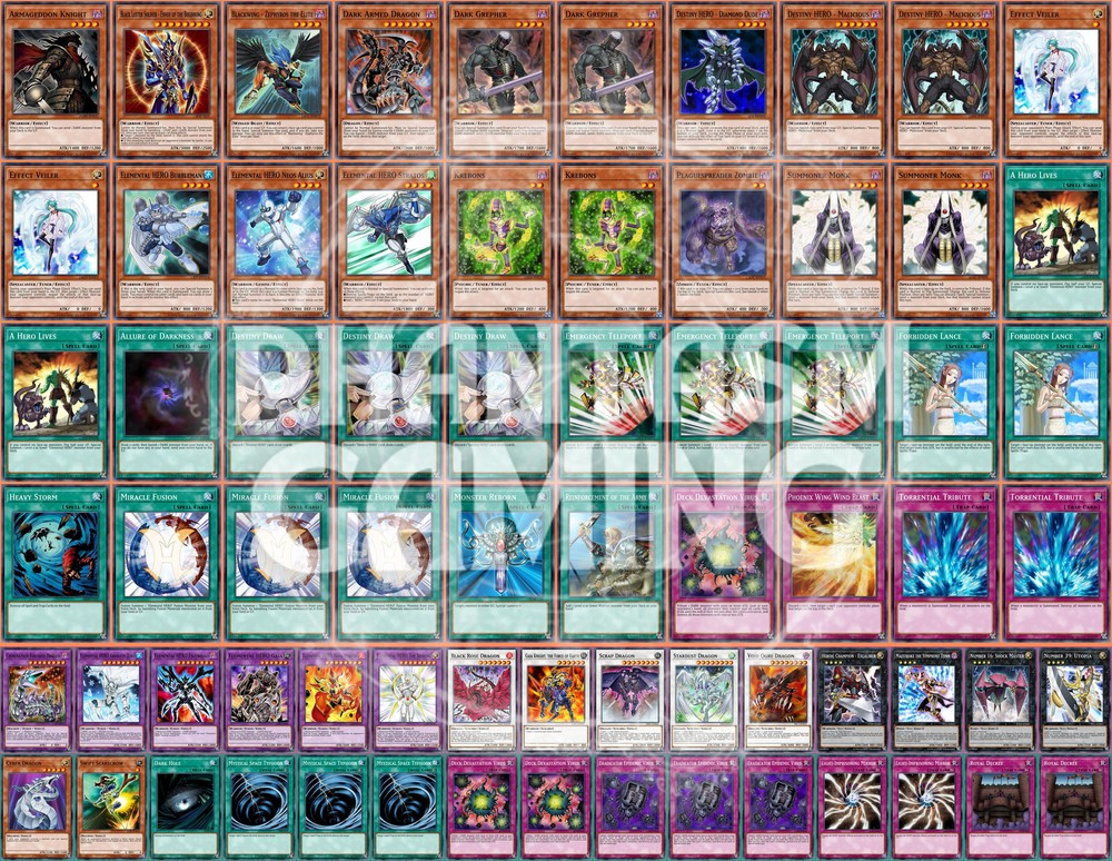 Deck Name: TeleDaD (B) (Wind-Up) # Main Deck (40) 1 - Armageddon Knight 1 - Black Luster Soldier - Envoy of the Beginning 1 - Blackwing - Zephyros the Elite 1 - Dark Armed Dragon 2 - Dark Grepher 1 - Destiny HERO - Diamond Dude 2 - Destiny HERO - Malicious 2 - Effect Veiler 1 - Elemental HERO Bubbleman 1 - Elemental HERO Neos Alius 1 - Elemental HERO Stratos 2 - Krebons 1 - Plaguespreader Zombie 2 - Summoner Monk 2 - A Hero Lives 1 - Allure of Darkness 3 - Destiny Draw 3 - Emergency Teleport 2 - Forbidden Lance 1 - Heavy Storm 3 - Miracle Fusion 1 - Monster Reborn 1 - Reinforcement of the Army 1 - Deck Devastation Virus 1 - Phoenix Wing Wind Blast 2 - Torrential Tribute # Extra Deck (15) 1 - Chimeratech Fortress Dragon 1 - Elemental HERO Absolute Zero 1 - Elemental HERO Escuridao 1 - Elemental HERO Gaia 1 - Elemental HERO Nova Master 1 - Elemental HERO The Shining 1 - Black Rose Dragon 1 - Gaia Knight, the Force of Earth 1 - Scrap Dragon 1 - Stardust Dragon 1 - Void Ogre Dragon 1 - Heroic Champion - Excalibur 1 - Maestroke the Symphony Djinn 1 - Number 16: Shock Master 1 - Number 39: Utopia # Side Deck (15) 1 - Cyber Dragon 1 - Swift Scarecrow 1 - Dark Hole 3 - Mystical Space Typhoon 2 - Deck Devastation Virus 3 - Eradicator Epidemic Virus 2 - Light-Imprisoning Mirror 2 - Royal Decree You will receive all of the following cards listed above. Most cards will will be in near mint condition. In the case of certain older cards we will do our best but some cards may be light or even moderatly played in extreme condtions. Those conditions being the card has not been reprinted in a number of years and con no longer be easily purchased in light or near mint condition. Set, Rarity, and Edition will vary and cannot be special requested. These lists are constructed with least expensive rarities we have available in stock. All cards are play legal copies. Note: If purchasing a Yugioh Deck all Speed duel cards are 100% legal at all levels of play. Store Policies Here at PMG_LLC , we pride ourselves on having the best customer service around. If you have any questions or can't seem to find something that you want please do not hesitate to contact us. We will do our best to respond to all questions within one business day. Hours of Operation: Monday-Friday: 2:30pm - 10:00pm Saturday- 10:00am - 8:00pm Sunday 11:00am - 5:30pm Note: We are closed all national holidays. Info: Thank you for choosing PMG_LLC . We appreciate your business. We ship Monday through Friday to make sure you get your deck as quickly as possible. All orders priority orders can use combined shipping. In order to use the combined shipping your whole purchase needs to be checked out as one order. We ship once we have received your payment and payment has cleared. As always if you have any questions or concerns please feel free to contact us via email. Shipping Information: We ship Monday through Friday, barring national holidays during which the United States Postal Service is closed. If you purchase a card on Friday or Saturday please bear in mind it will not ship until Monday. US Shipping: First Class Mail : Free. Comes with tracking information. Priority Mail with Delivery Confirmation : $9.99 All orders are shipped in appropriate protective material inside bubble mailers. International Shipping: We do not offer international Shipping Return Policy: You must return items sold and fulfilled by PMG_LLC within 30 days of delivery to be eligible for a refund. Returns which are damaged in the mail due to improper return packaging will receive partial refunds. We will process a full refund for all items returned in their original condition. In order for us to process your full refund you must include the full name associated with the order as well as the eBay order number inside the return packaging. We will not process returns which do not include the buyer's name and order number. Requirements: Please return items with the original plastic packaging. Failure to do so may result in a partial refund. Also you must inform us of any returns you may wish to process before sending them back. Any items simply send back to us without prior contact will not be eligible for refunds. Important Notes Remember that to benefit from our domestic combined shipping on priority orders you must to pay in a single payment. If you place two separate priority orders you will be charged the $7.50 shipping fee for both orders. If you place multiple orders for Priority shipping you will be charged the corresponding shipping costs for each order, even if you place the orders on the same day. We do not refund shipping costs as we tend to package orders throughout the day and may not notice that you would otherwise have qualified for combined shipping. We want to provide you with 5 Star service and earn your Positive Feedback, so if for any reason you are not happy with your transaction, contact us before leaving feedback. Business Day - Our business day runs from Monday to Friday from 9am to 4pm, excluding US national holidays. Any orders placed or payments cleared less than 4 hours before the close of business will be considered orders from the following business day.