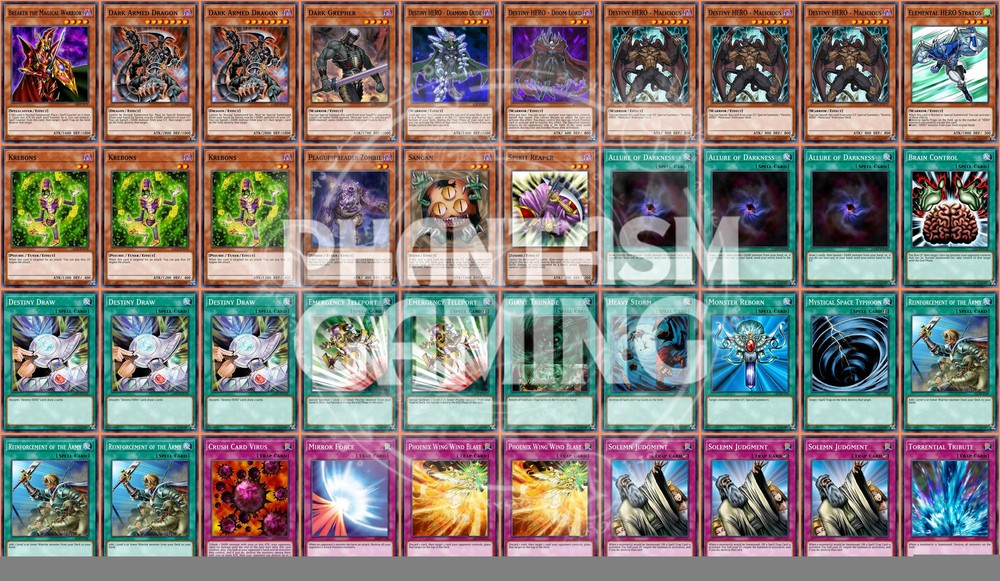 Deck Name: Teledad (B) (Teledad) # Main Deck (40) 1 - Breaker the Magical Warrior 2 - Dark Armed Dragon 1 - Dark Grepher 1 - Destiny HERO - Diamond Dude 1 - Destiny HERO - Doom Lord 3 - Destiny HERO - Malicious 1 - Elemental HERO Stratos 1 - Gorz the Emissary of Darkness 3 - Krebons 1 - Plaguespreader Zombie 1 - Sangan 1 - Spirit Reaper 3 - Allure of Darkness 1 - Brain Control 3 - Destiny Draw 2 - Emergency Teleport 1 - Heavy Storm 1 - Monster Reborn 1 - Mystical Space Typhoon 3 - Reinforcement of the Army 1 - Crush Card Virus 1 - Mirror Force 2 - Phoenix Wing Wind Blast 3 - Solemn Judgment 1 - Torrential Tribute You will receive all of the following cards listed above. Most cards will will be in near mint condition. In the case of certain older cards we will do our best but some cards may be light or even moderatly played in extreme condtions. Those conditions being the card has not been reprinted in a number of years and con no longer be easily purchased in light or near mint condition. Set, Rarity, and Edition will vary and cannot be special requested. These lists are constructed with least expensive rarities we have available in stock. All cards are play legal copies. Note: If purchasing a Yugioh Deck all Speed duel cards are 100% legal at all levels of play. Store Policies Here at PMG_LLC , we pride ourselves on having the best customer service around. If you have any questions or can't seem to find something that you want please do not hesitate to contact us. We will do our best to respond to all questions within one business day. Hours of Operation: Monday-Friday: 2:30pm - 10:00pm Saturday- 10:00am - 8:00pm Sunday 11:00am - 5:30pm Note: We are closed all national holidays. Info: Thank you for choosing PMG_LLC . We appreciate your business. We ship Monday through Friday to make sure you get your deck as quickly as possible. All orders priority orders can use combined shipping. In order to use the combined shipping your whole purchase needs to be checked out as one order. We ship once we have received your payment and payment has cleared. As always if you have any questions or concerns please feel free to contact us via email. Shipping Information: We ship Monday through Friday, barring national holidays during which the United States Postal Service is closed. If you purchase a card on Friday or Saturday please bear in mind it will not ship until Monday. US Shipping: First Class Mail : Free. Comes with tracking information. Priority Mail with Delivery Confirmation : $9.99 All orders are shipped in appropriate protective material inside bubble mailers. International Shipping: We do not offer international Shipping Return Policy: You must return items sold and fulfilled by PMG_LLC within 30 days of delivery to be eligible for a refund. Returns which are damaged in the mail due to improper return packaging will receive partial refunds. We will process a full refund for all items returned in their original condition. In order for us to process your full refund you must include the full name associated with the order as well as the eBay order number inside the return packaging. We will not process returns which do not include the buyer's name and order number. Requirements: Please return items with the original plastic packaging. Failure to do so may result in a partial refund. Also you must inform us of any returns you may wish to process before sending them back. Any items simply send back to us without prior contact will not be eligible for refunds. Important Notes Remember that to benefit from our domestic combined shipping on priority orders you must to pay in a single payment. If you place two separate priority orders you will be charged the $7.50 shipping fee for both orders. If you place multiple orders for Priority shipping you will be charged the corresponding shipping costs for each order, even if you place the orders on the same day. We do not refund shipping costs as we tend to package orders throughout the day and may not notice that you would otherwise have qualified for combined shipping. We want to provide you with 5 Star service and earn your Positive Feedback, so if for any reason you are not happy with your transaction, contact us before leaving feedback. Business Day - Our business day runs from Monday to Friday from 9am to 4pm, excluding US national holidays. Any orders placed or payments cleared less than 4 hours before the close of business will be considered orders from the following business day.