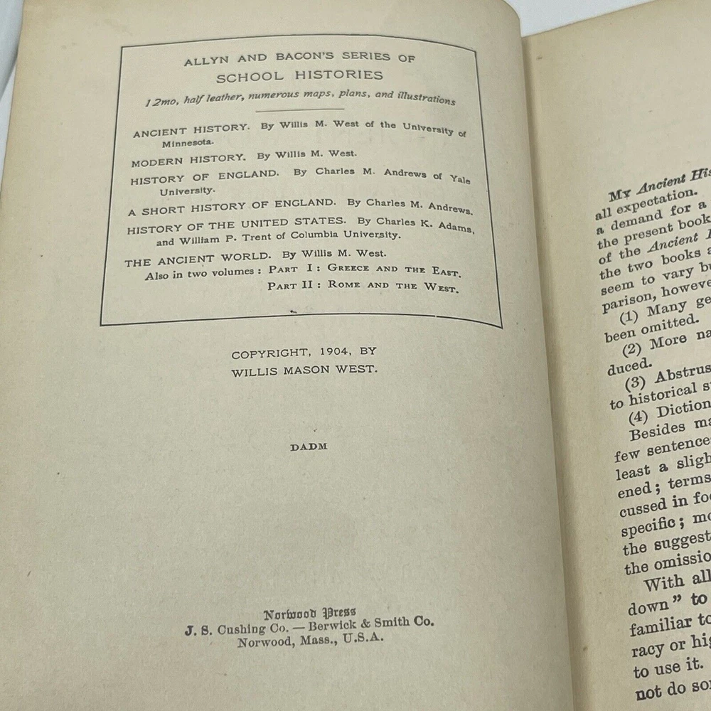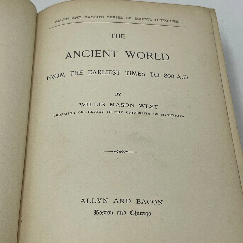 <![CDATA[<div>The Ancient World, 1904 School Book by Willis West, Publ. Allyn and Bacon 1904 hardcover. This book is in damage condition please see all the pictures sell as is