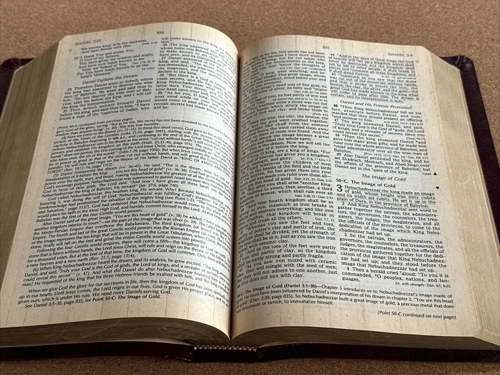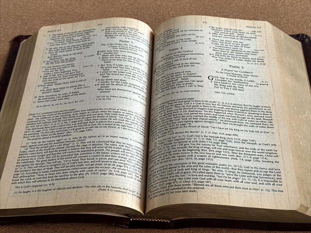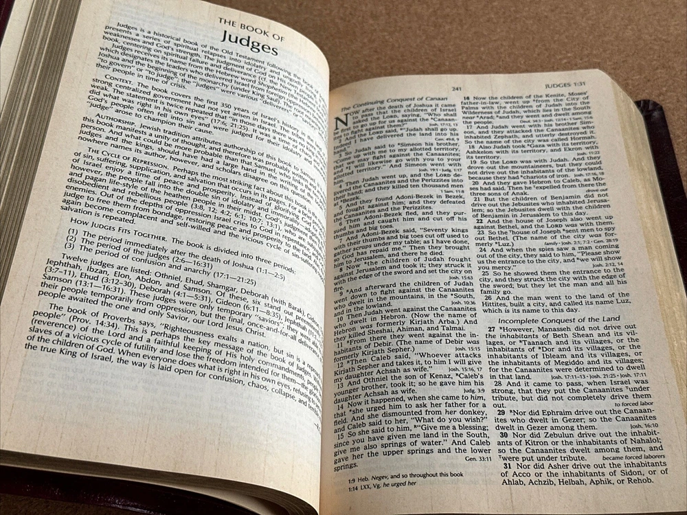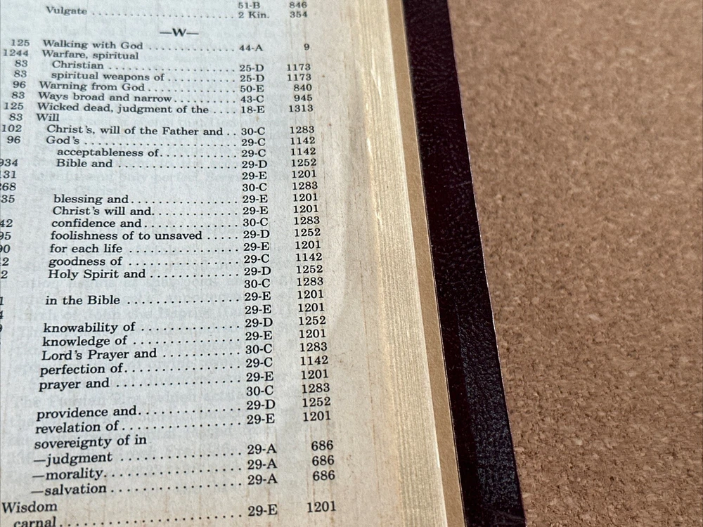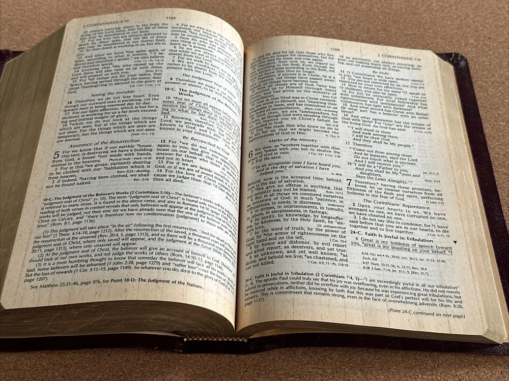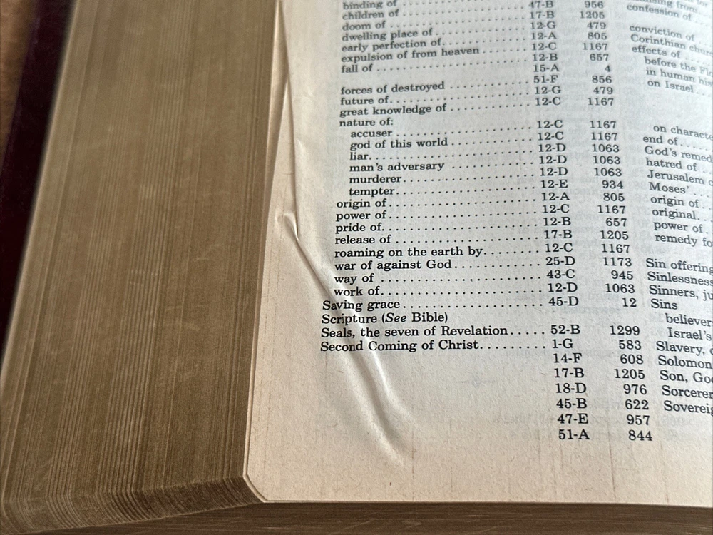 I have available a Christian Life Edition, New King James Version, Holy Bible. This also includes references and a concordance. This was published in 1985. Cover has lightly rubbed edges / corners, and some rubbed spots on the front that show as white. Pages have no rips or writing, there are a few pages in the back with some creases, see photos. The pages have also darkened. There are also a few tiny smudge marks. When the Bible is closed there is some light wear along the outer page edges. Overall, the Bible is still in good condition. Bible measures 6 1/2 inches across, by 9 3/4 inches in length, by 1 1/2 inches in depth. Please feel free to ask any questions. I only ship within the U.S. Thank you for viewing my auction.