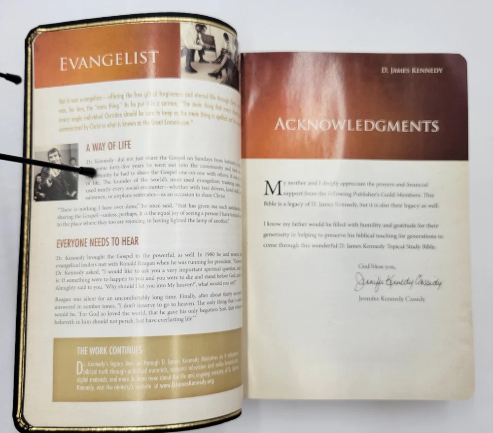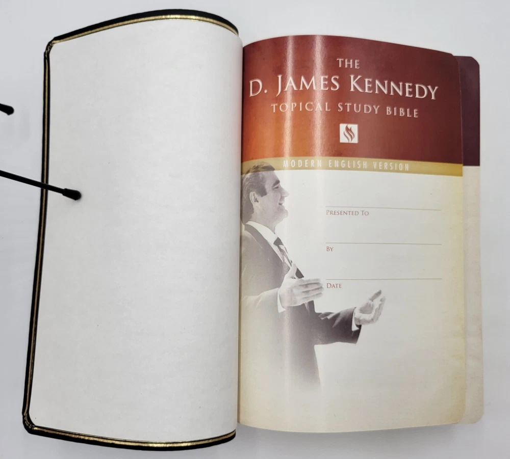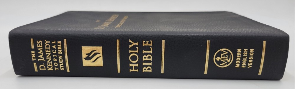 Like New copy. Comes with original box. Clean & unmarked. The only flaw is light fingerprints on the cover. Please see the photos for the actual condition of the Bible you will receive. Ships in a box. Experience a deeper understanding of the Bible with the D. James Kennedy Topical Study Holy Bible in Modern English Version. This study bible, authored by D. James Kennedy is designed to enhance your reading and studying experience with its features, including color maps, leather cover, 2 ribbon page markers, and gilt page edges. The book is published by Passio in 2015 and is intended for young adults and adults who want to explore the Bible in a more meaningful way. The book belongs to the Study Bible book series and is written in English, the original language. This nonfiction book is perfect for those who seek spiritual enlightenment and religious wisdom.
