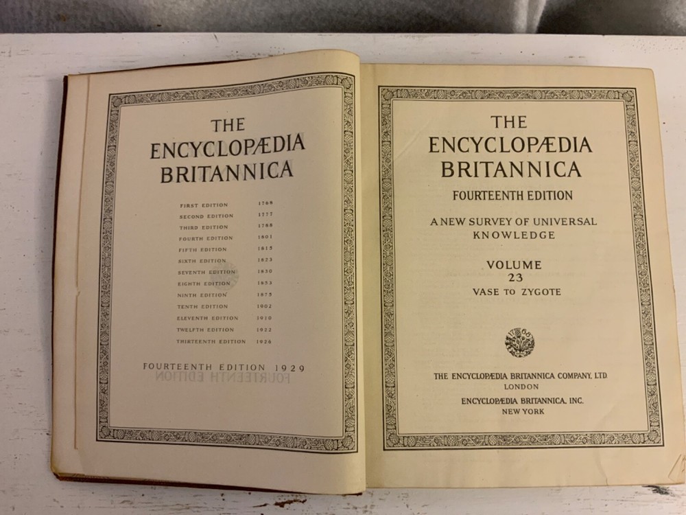 Vintage Encyclopædia Britannica 14th Edition Vol 23 Vase to Zygote Missing Back Cover