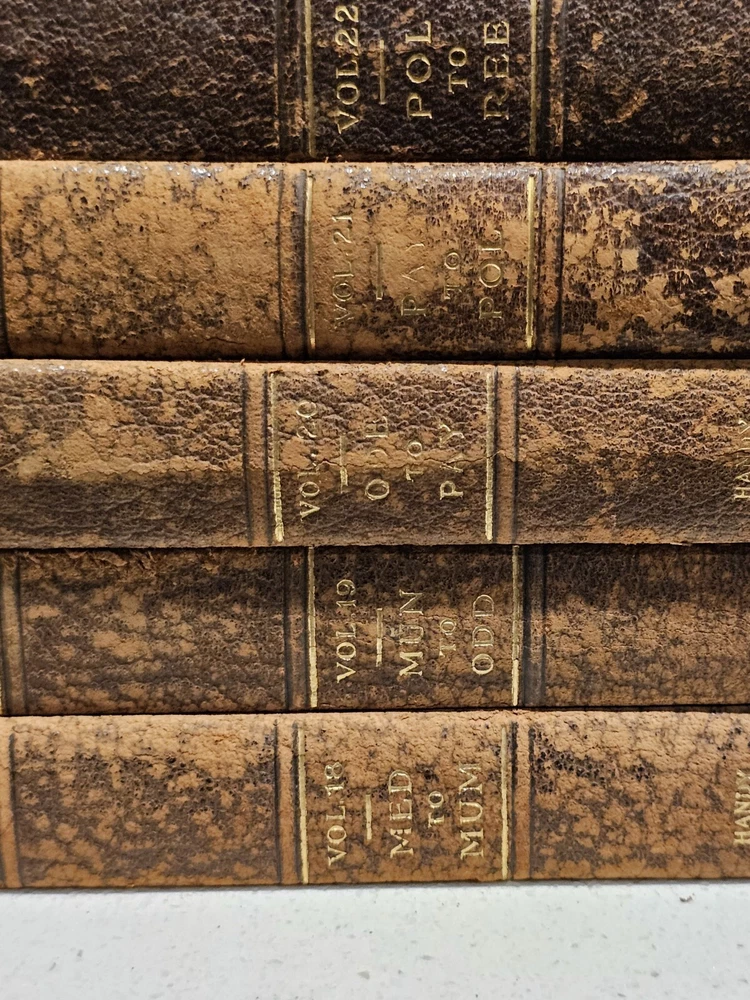 The Encyclopaedia Britannica Eleventh Edition 1911 New York Leather Incomplete is a luxury collector's edition encyclopedia published by Encyclopædia Britannica Inc. in the United States. This original 1911 edition features various authors and is elegantly bound in leather, making it a valuable and sought-after piece for collectors. The book is illustrated and contains maps in great condition, adding to its appeal as a reference work on a wide range of topics. Only missing 3 Volumes, 10, 11 and 13.