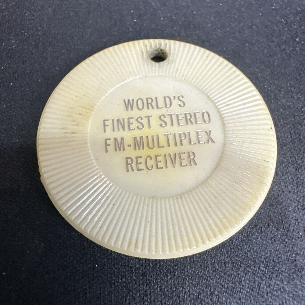 This vintage keychain is a must-have for any music lover. The Fisher Audio Worlds Finest Stereo FM-Multiplex Receiver is a key ring that will bring back memories of the golden age of radio. With its retro design and sturdy construction, this keychain is perfect for everyday use or as a collector's item. The keychain features a key ring and is made of high-quality materials that ensure durability. The design is inspired by the Fisher Audio Worlds Finest Stereo FM-Multiplex Receiver, a classic piece of technology that is sure to impress any vintage tech enthusiast. This item is a great addition to any keychain collection or as a standalone piece for those who appreciate music and technology.