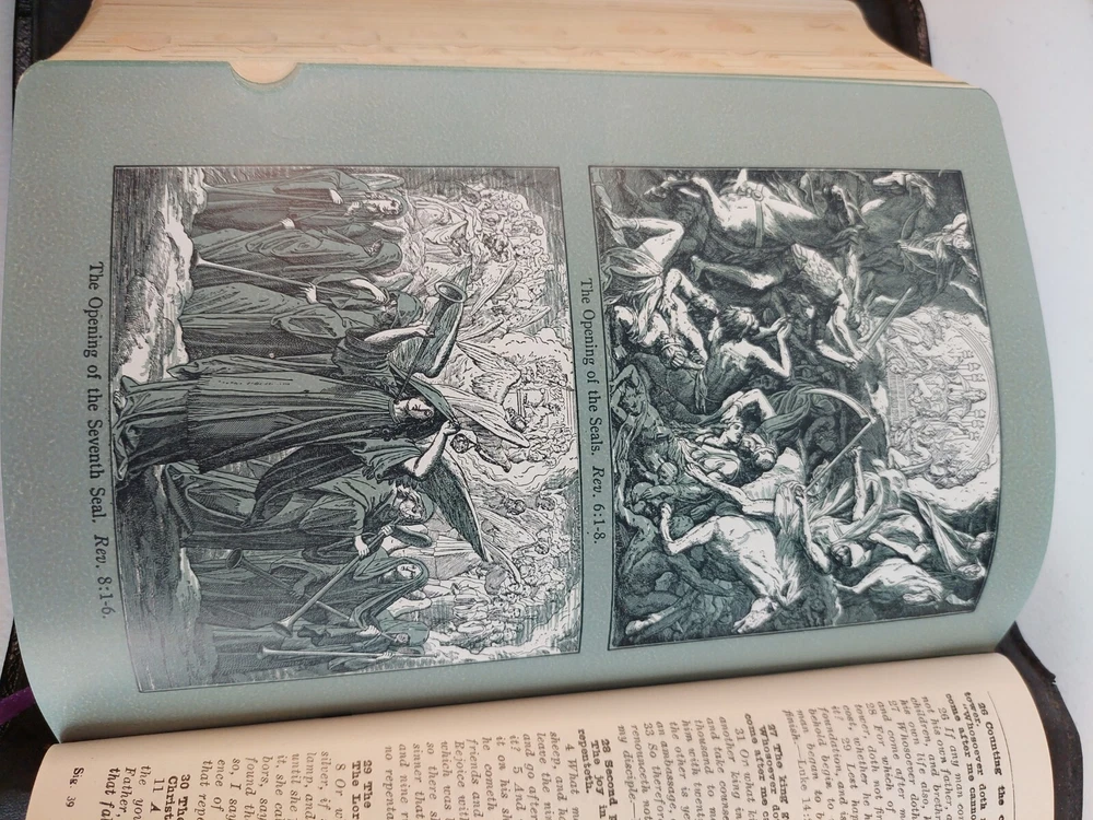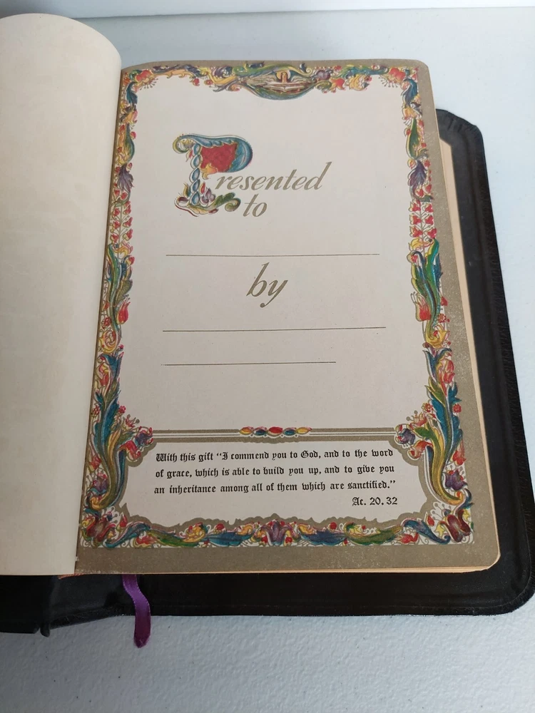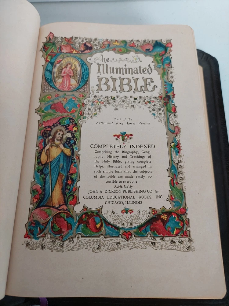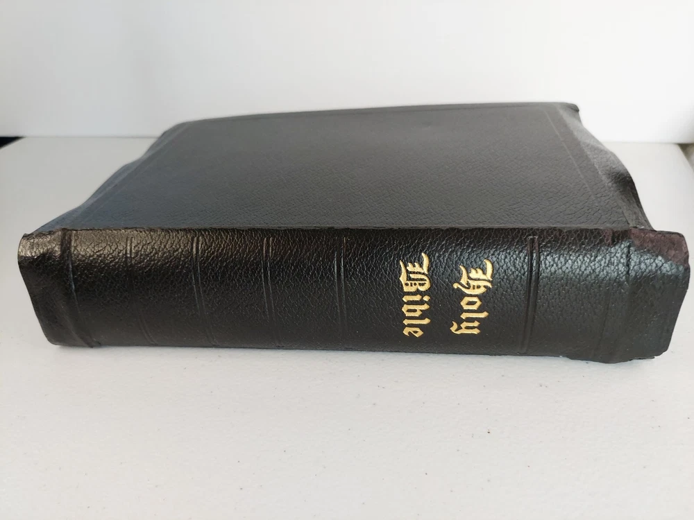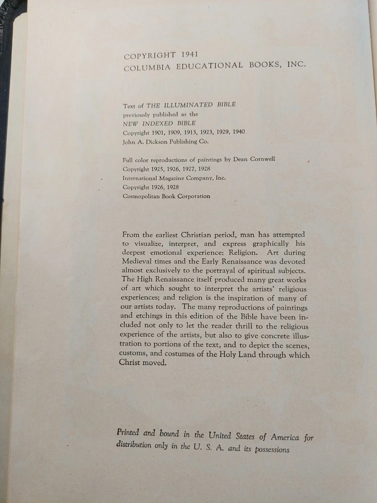 PLEASE REVIEE ALL PICTURES CAREFULLY PRIOR TO PURCHASE. This black leather bound Holy Bible is a must-have for any collector or believer. Featuring the renowned illustrations of Dean Cornwell, this Bible is a true gem. The pages are filled with intricate maps and illustrations that bring the stories of Christianity to life. Published by Columbia Educational Books, Inc. in 1941, this Bible is a special edition that will be cherished for years to come. The Good Samaritan Holy Bible Indexed Maps Illustrations KJV Blk Leather 1941 is a unique addition to any collection. With its beautiful leather binding and special attributes, this Bible is sure to be a prized possession. Whether you are a believer or a collector, this Bible is a great investment. Please note that the condition issues are due to age and expected with a vintage item. Some pages have personal notes and family history on thrm. Some cracking along with spines of the leather and general condition issues as expected with an item of this age.