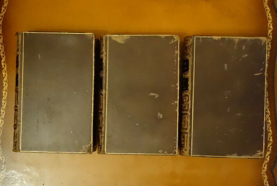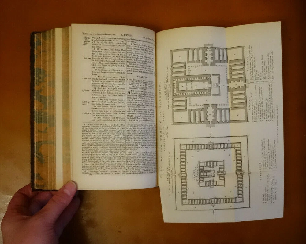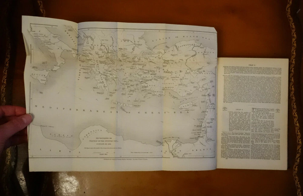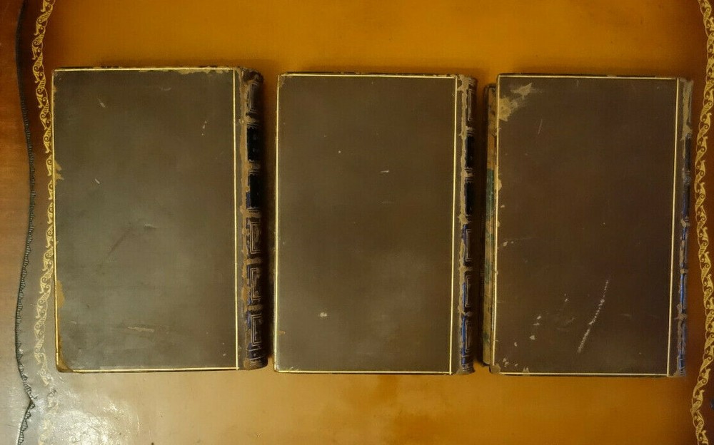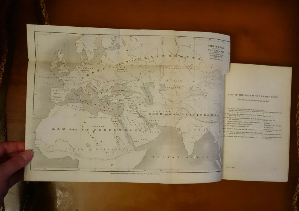 The Holy Bible in 3 volumes prepared and arranged by Rev. George D'oyly, D. D. & Rev Richard Mant, D. D. Printed in 1856. Beautiful marbled page ends and endsheets. Fold out maps. Leather covers have some damage. Pages are in great condition. Tight binding.