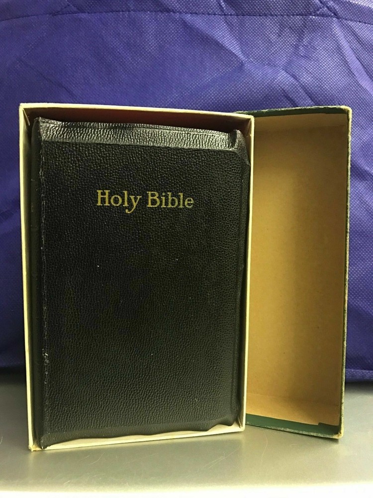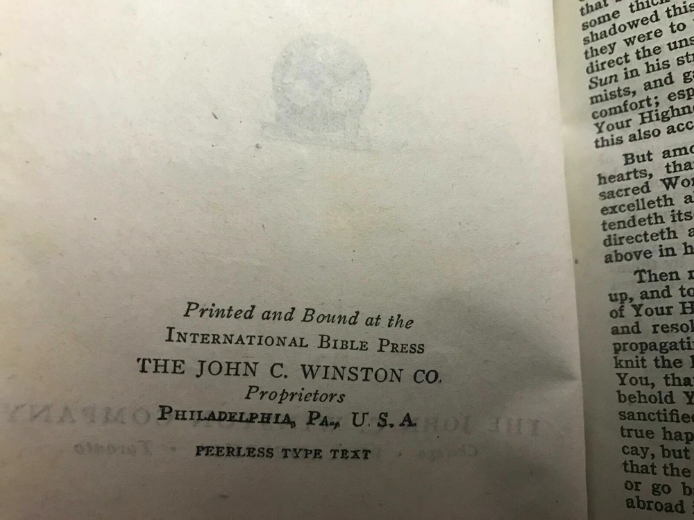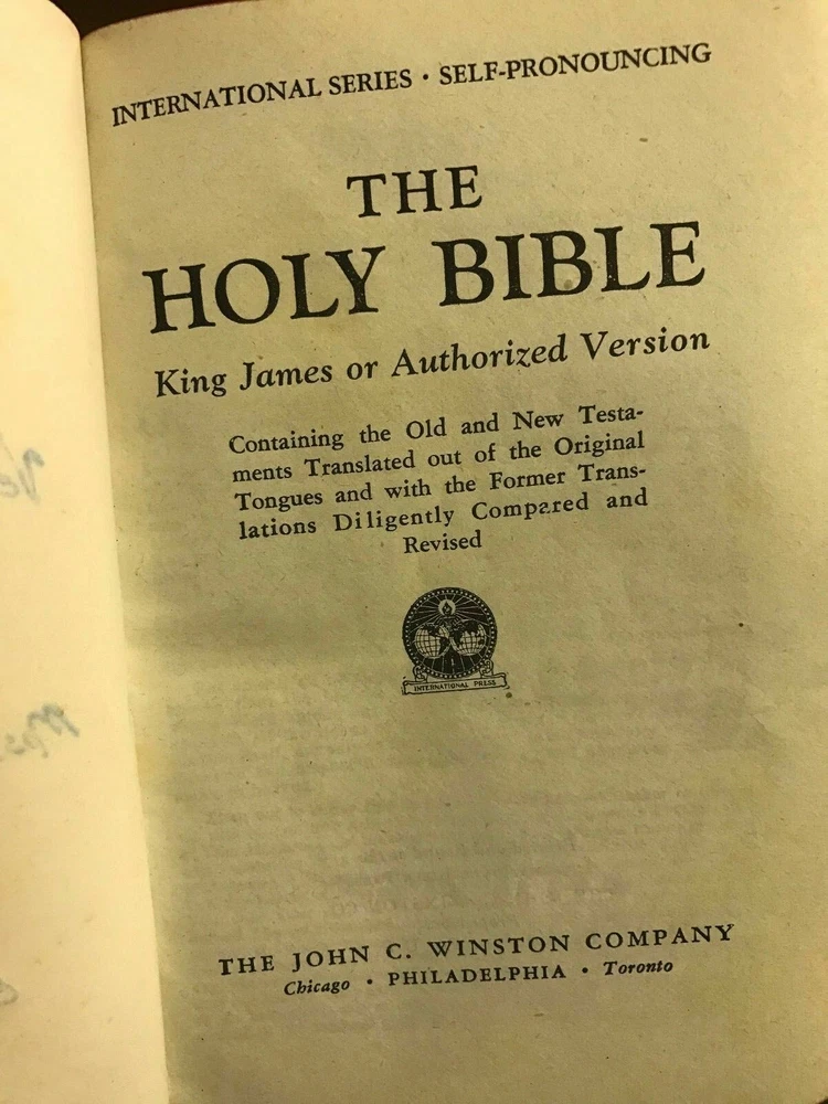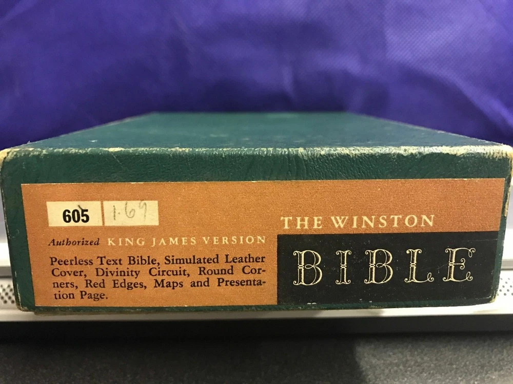 The Holy bible Authorized King James version the Winston bible. Peerless text bible simulated leather cover, Divinity circuit, round corners, red edges, maps and presentation page. This bible is pre-owned, but it is in great vintage condition.