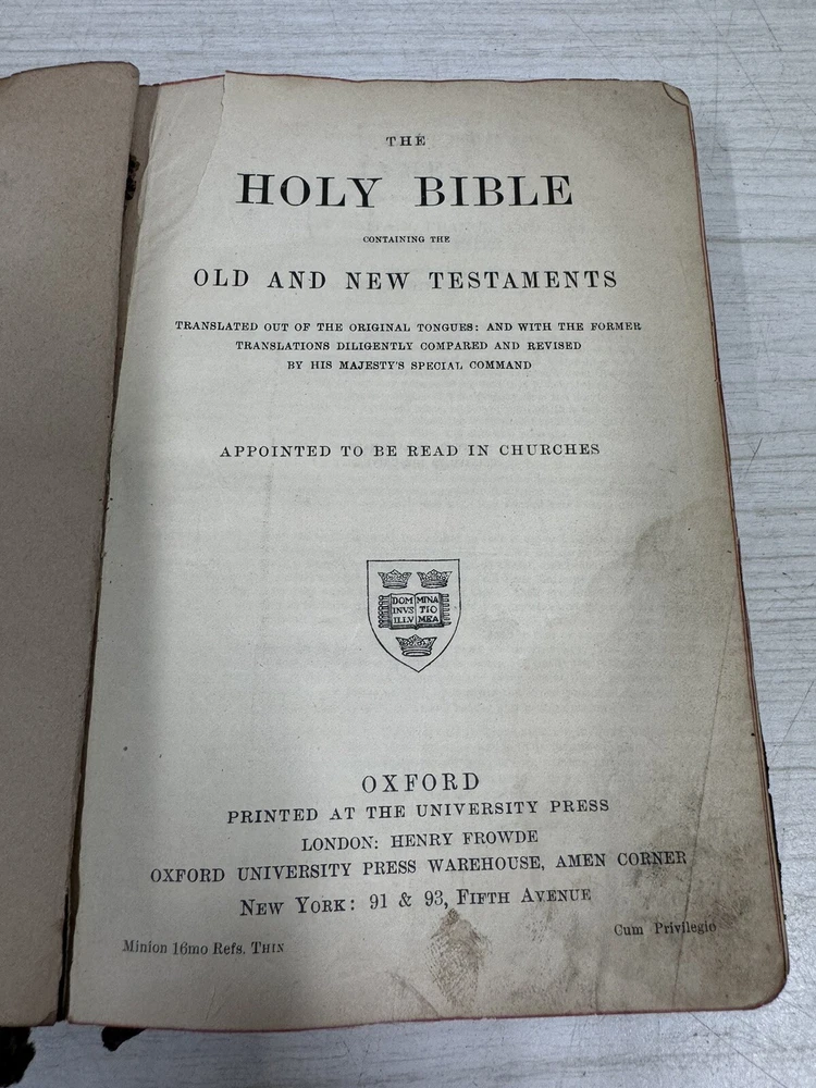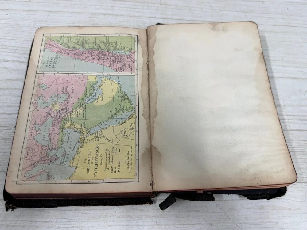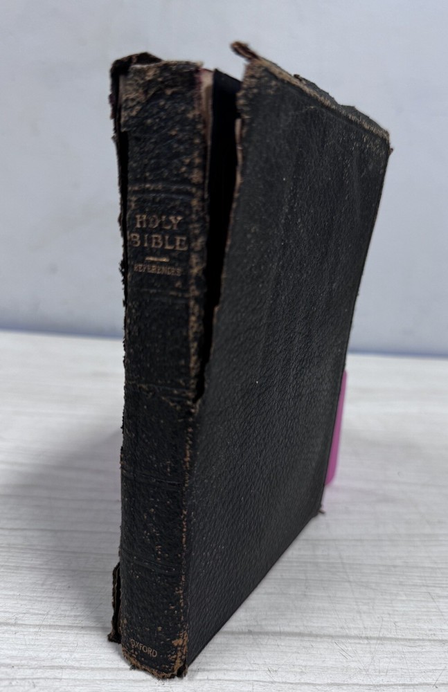 This Holy Bible Reference & Maps edition from 1902 is a must-have for any collector or believer in Christianity. With its leather binding and original copy, it is a rare find for anyone interested in the Old and New Testaments. Published by Oxford University Press and written in English, this Bible is a valuable addition to any collection. It contains detailed maps and references to help readers navigate the text. Whether you are a scholar or simply a believer, this Bible is a precious item that should not be missed. Please note due to its age the binding is starting to break away and will need something to keep it together. The inner pages are good. Please see all the pictures and as always thank you for checking out our vintage merchandise