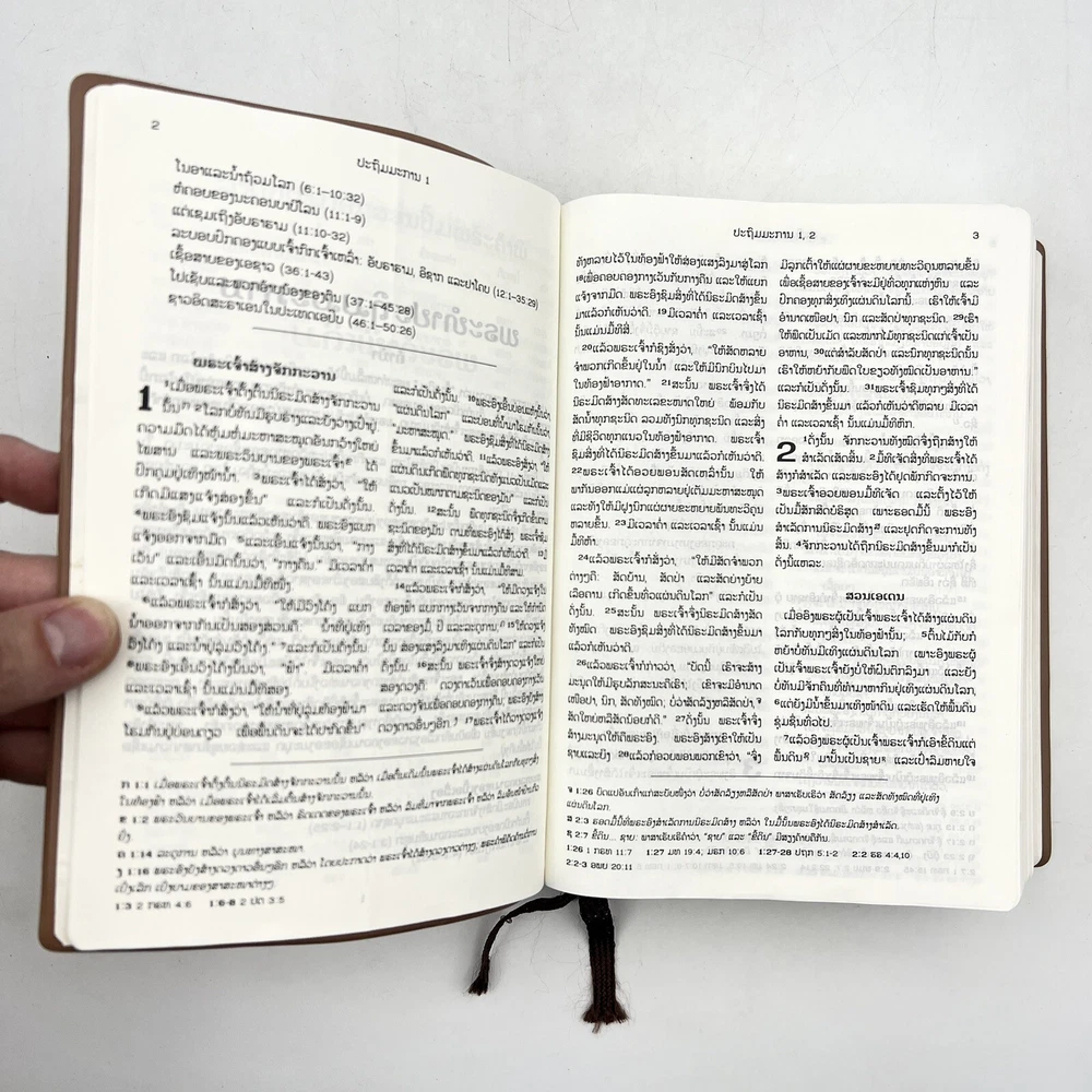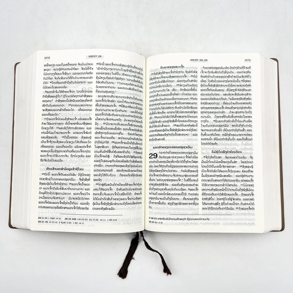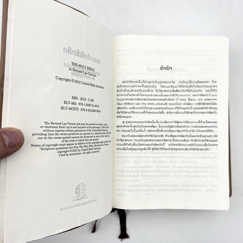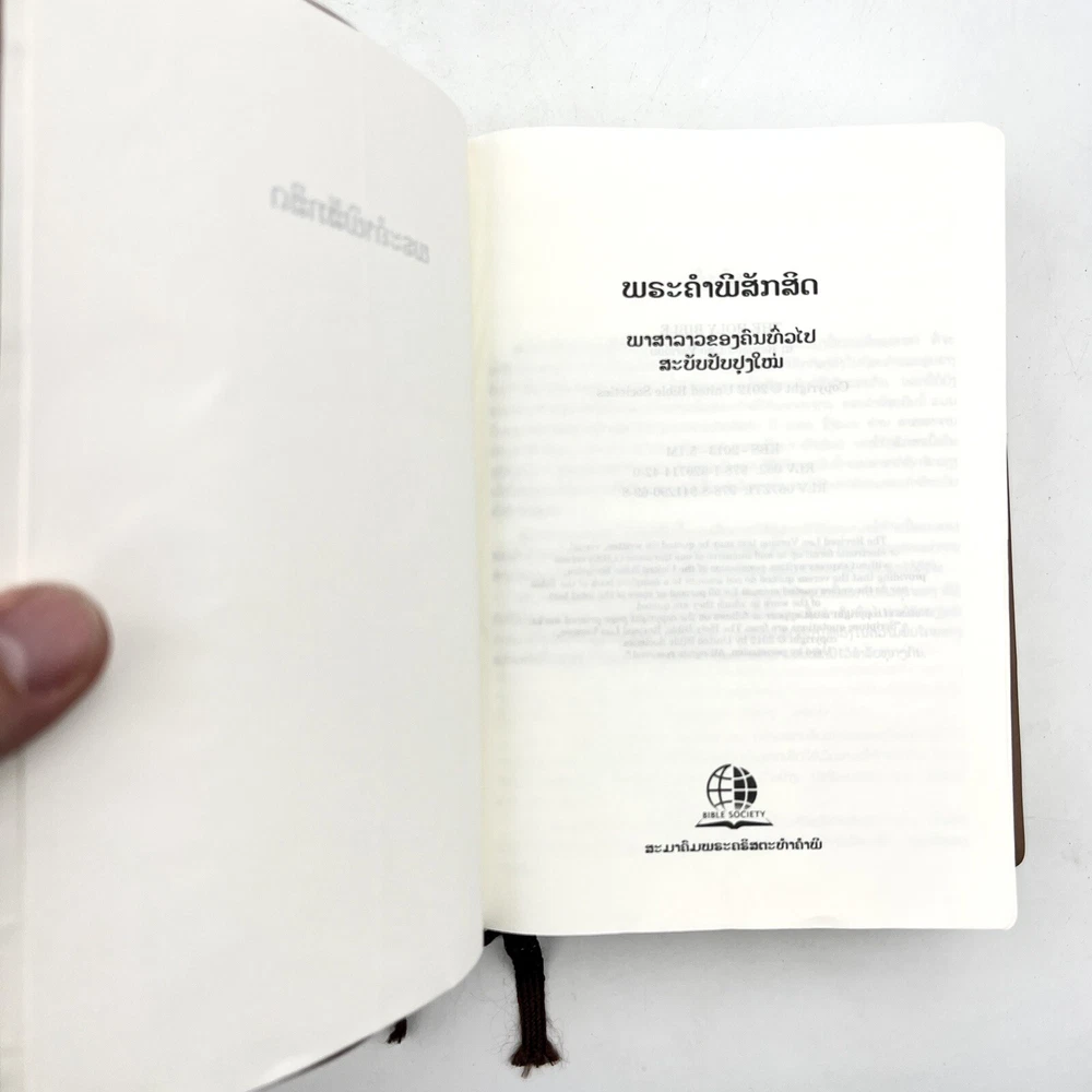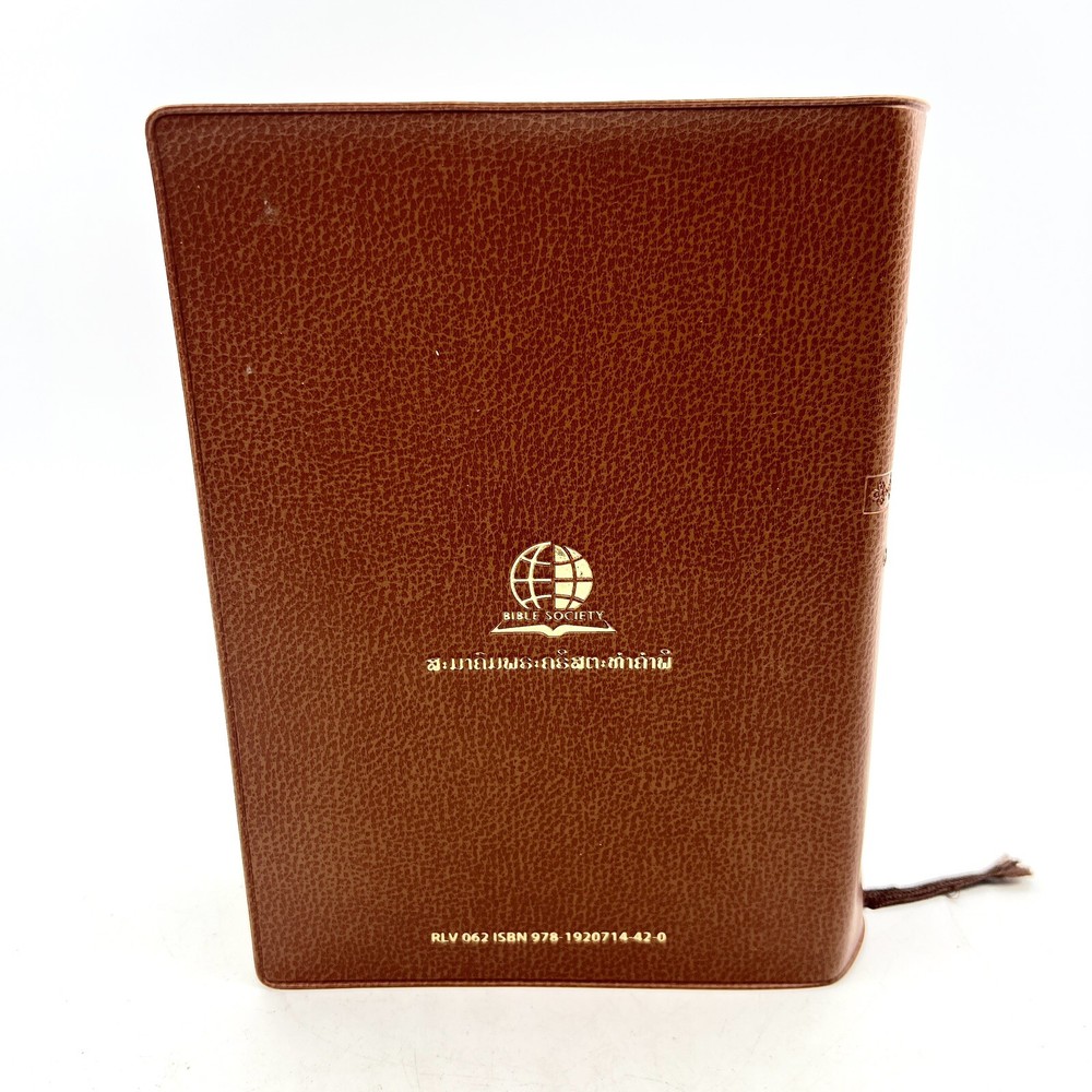 Selling a The Holy Bible in LAO Language Brown Leather Bound RLV062 - color Maps - Bible Society in good pre-owned condition. Shows some damage on the inside as shown. Please see photos to see details of the condition. Lighting in photos may make color of product appear slight different (lighter or darker) than actual color. If you have any questions, feel free to send us a message!