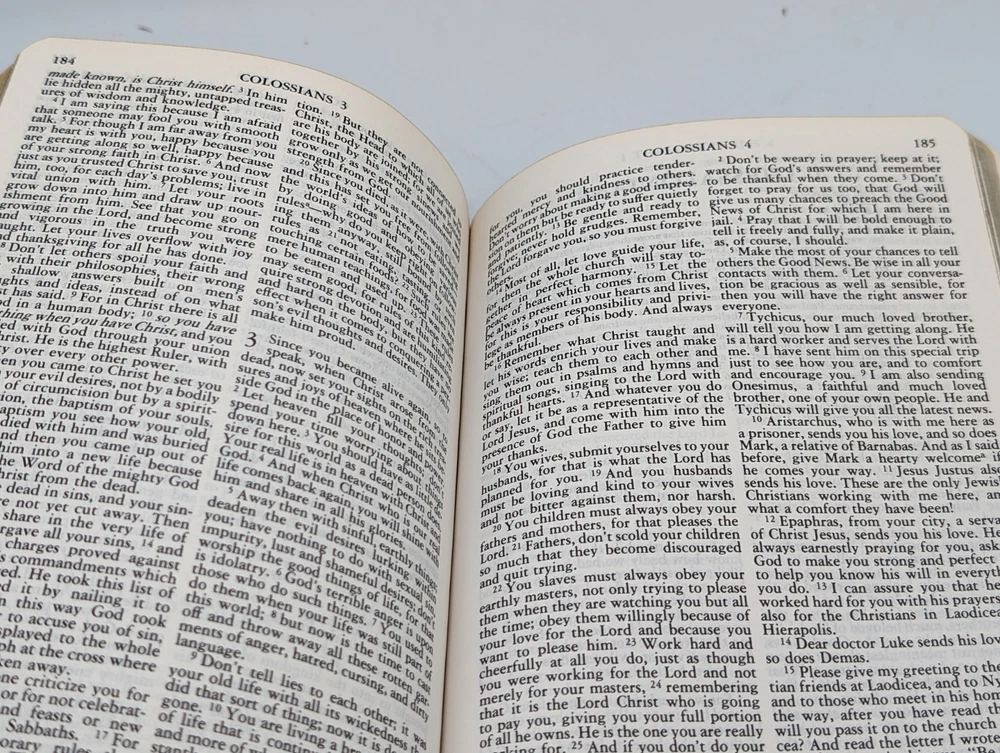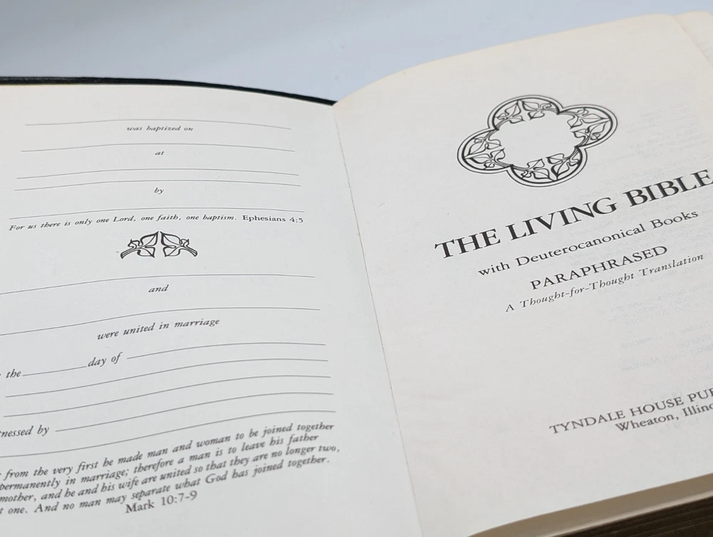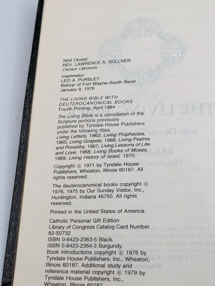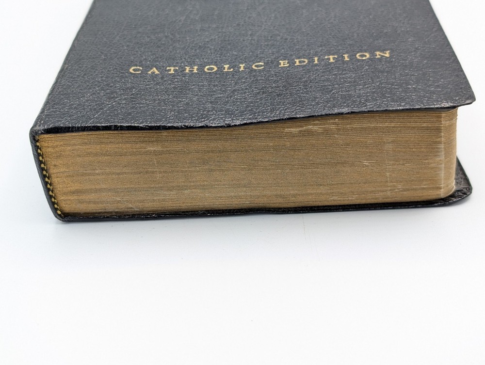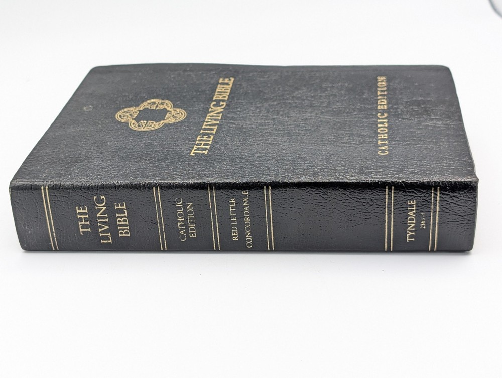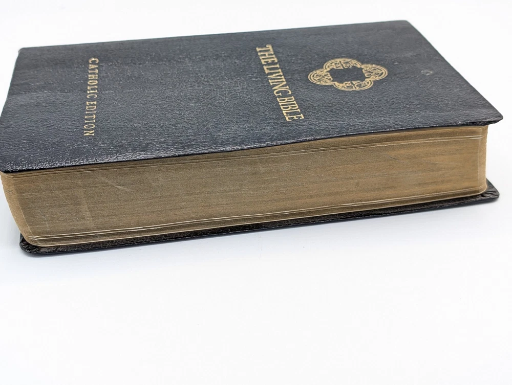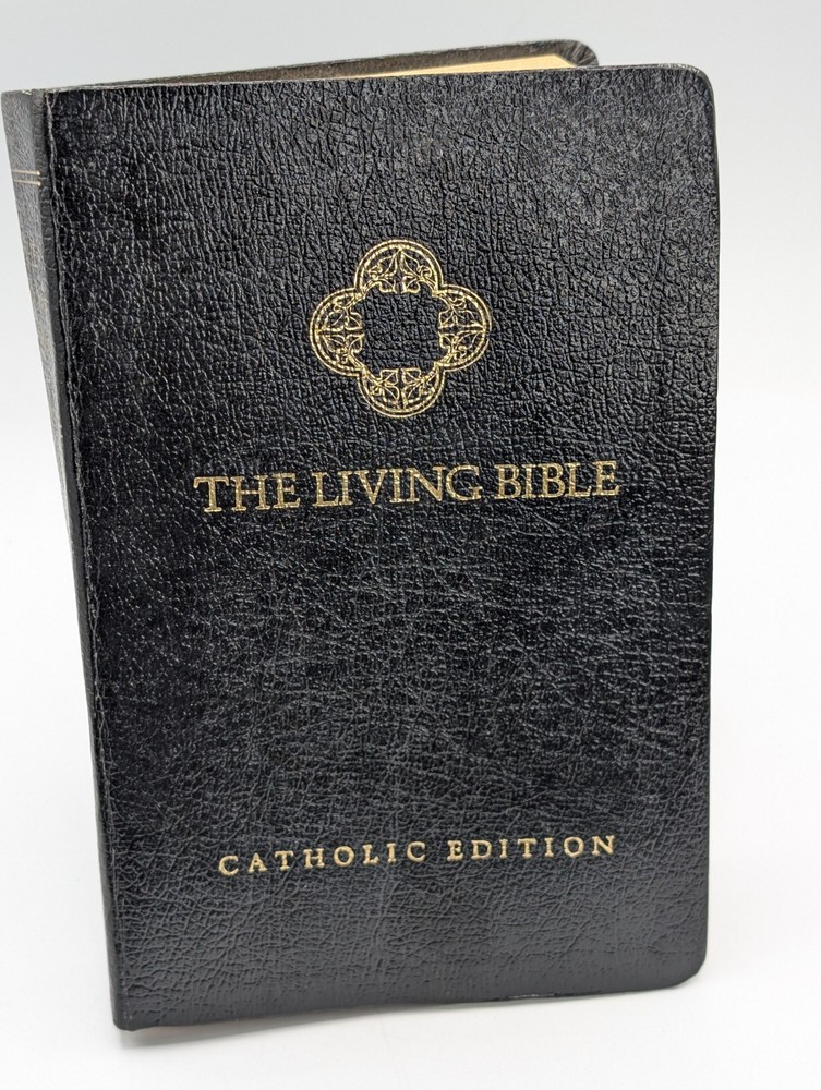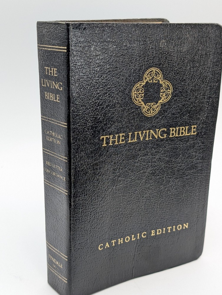 The Living Bible β Catholic Edition (1984) Black leather-bound vintage hardcover in good condition. This rare 1984 Catholic edition of The Living Bible features a beautiful black leather cover, gold-edged pages, and ribbon marker. Includes Catholic deuterocanonical books and official Catholic text notes throughout. This edition is out of print and highly collectible. Perfect for Bible collectors, Catholic readers, or anyone seeking a vintage faith-based keepsake. Why Itβs Special: Out of print Beautiful keepsake or gift Bible Highly collectible edition for Catholic readers or Bible collectors π¦ Ships fast and safely packaged π¬ Message with any questions! The Living Bible Catholic Edition Black Leather 1984 Rare is pre-owned condition. Refer to the pictures and description for item specifics. Please note we do not know the history of each item and do our best to provide you with as many details as we can when necessary. We make every effort to represent the color as accurately as possible. However, colors may vary across different screens and the item may look slightly different when you see it in person. Shop our store for more great deals and bundled savings. At Something Good you'll find Good Products, Good Values, Good Service, and you'll help us do Good Deeds.
