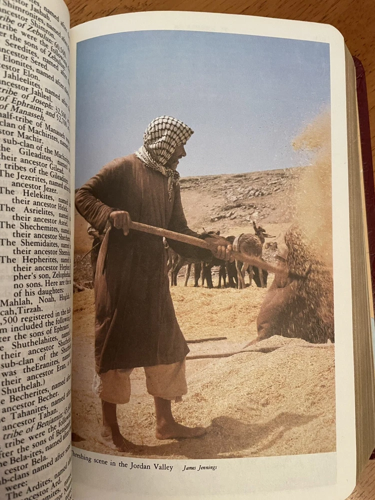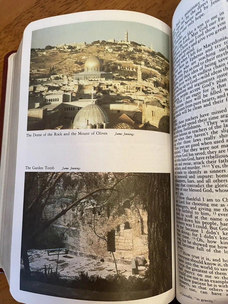 This Catholic Bible is in excellent condition Cover is clean with no rips or writing as are all of the pages The first page inside of cover shows a bit of glue that is why I didn’t call it excellent in the listing Red faux leather cover with gold lettering