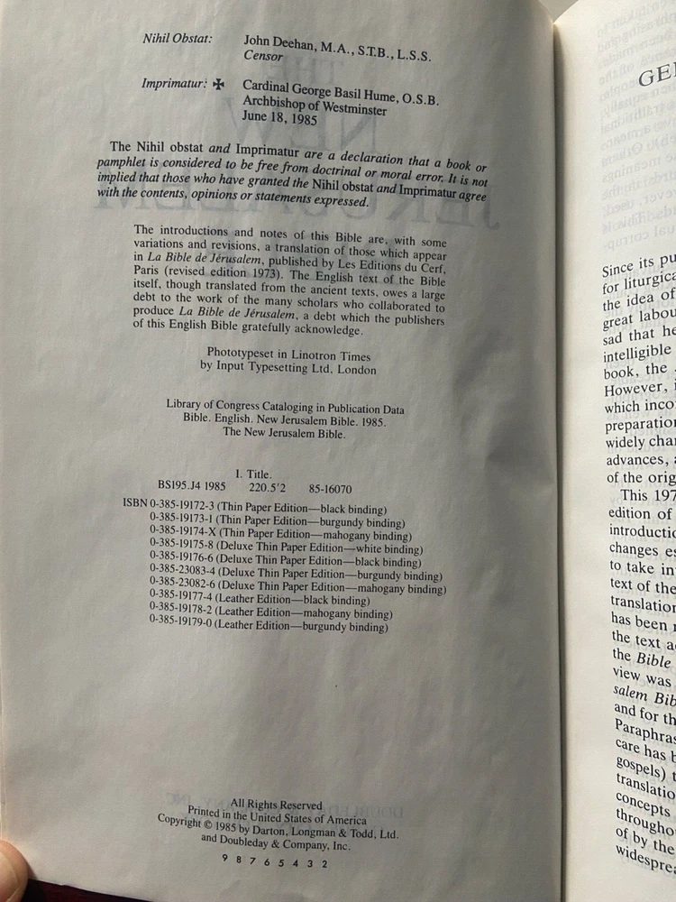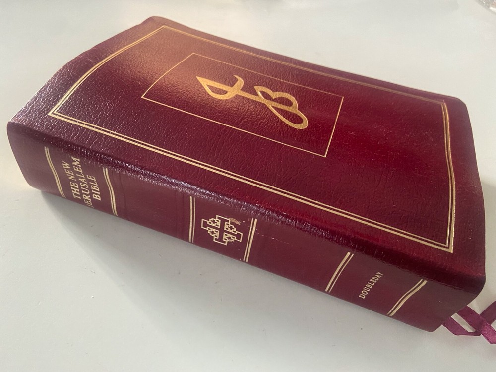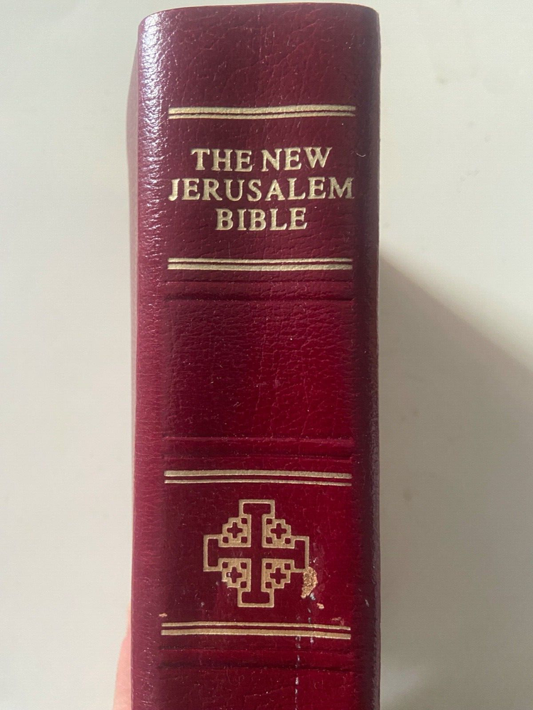 The New Jerusalem Bible Deluxe Burgundy Leather Doubleday Wansbrough 1985 Ships well packed via USPS media mail