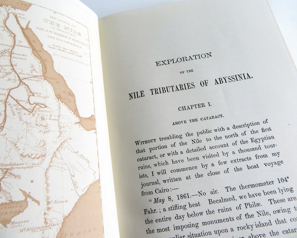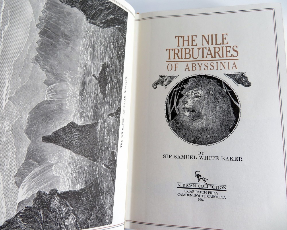 The Nile Tributaries Of Abyssinia by Samuel W Baker, 1987 Briar Patch leather Title: The Nile Tributaries Of Abyssinia Author: Sir Samuel White Baker Published: 1987, Briar Patch Press, Camden SC Series: African Collection About: Travel and descriptions of Africa and her lakes and rivers. Physical Description: Brown pebbled leather over boards. Decorative endpapers. Raised bands on spine. Gilt illustrated front and spine (gilt on spine is faded). Bound in ribbon marker. Pages: 606 Dimensions (inches): 9 x 6 Shipping weight: 4 lbs SKU: 6039 Powered by SixBit's eCommerce Solution