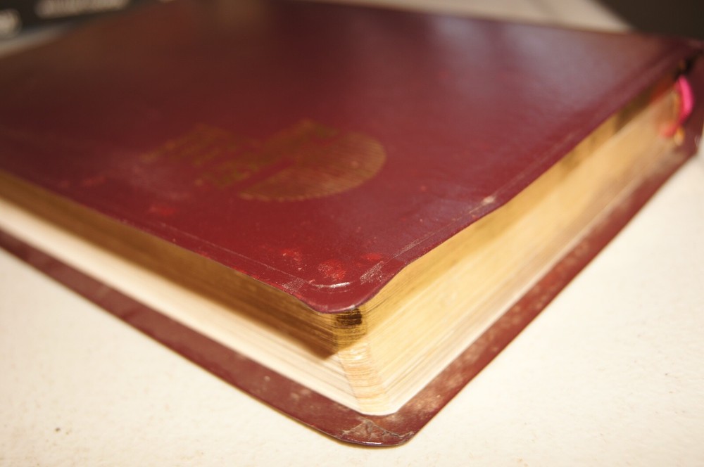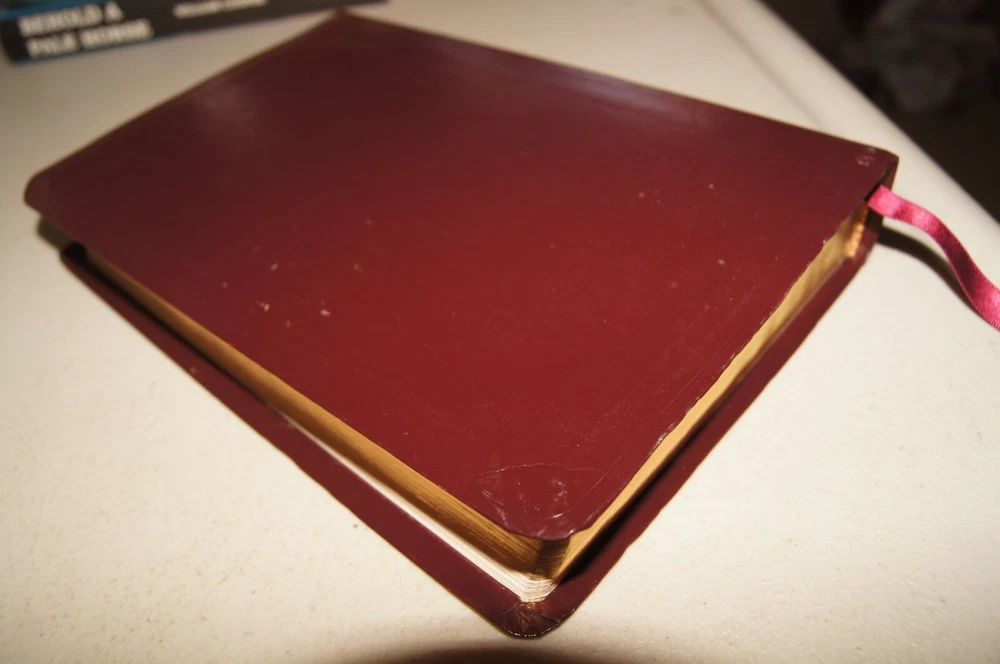 GOOD condition, no writing inside, some creasing on fake leather , some spotting on inside covers. Creasing on back maps. some spotting and scuffing on covers.
