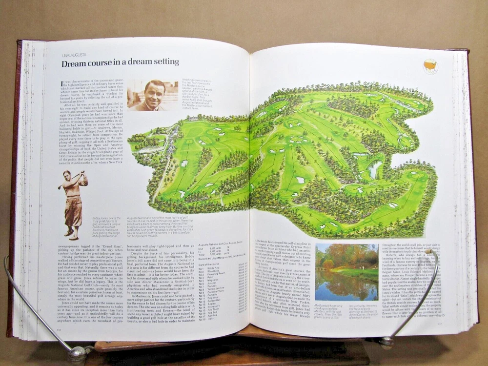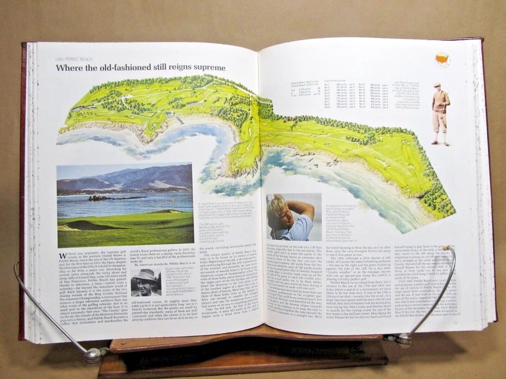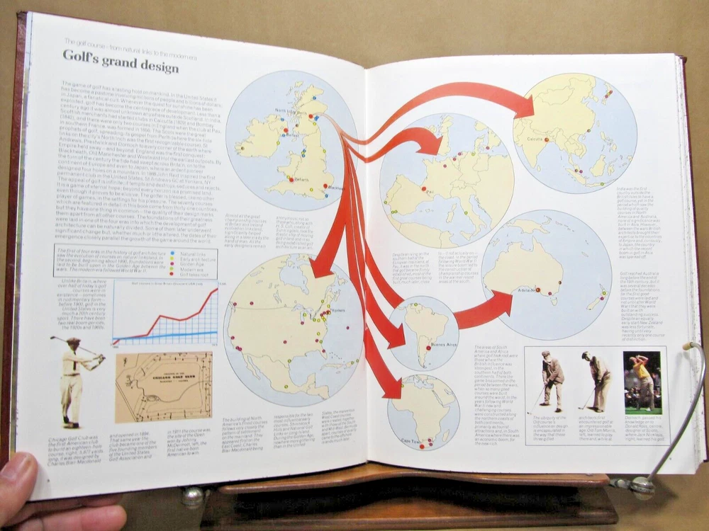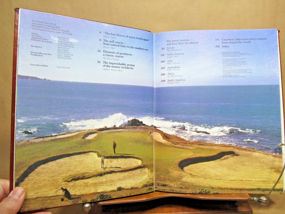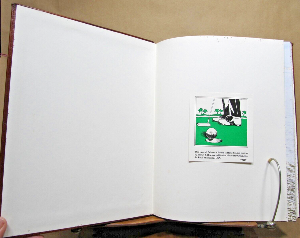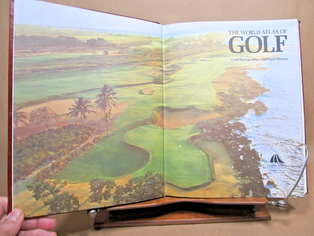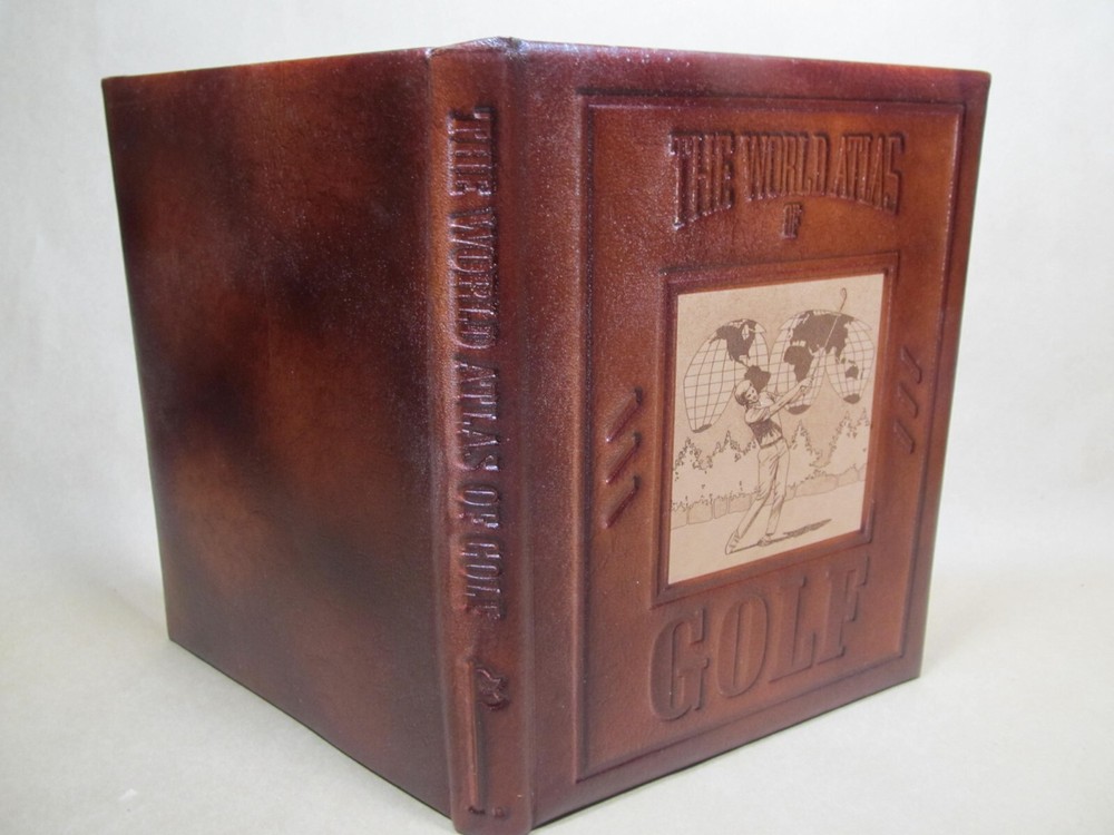 THE WORLD ATLAS OF GOLF The Greatest Courses and How They are Played, Edited by PAT WARD-THOMAS, full leather, 1986. Description: Hand crafted leather, blindstamped lettering with center illustration. Speckled edges. Illustrated frontis and title with illustrations throughout. Includes cover box. Condition: Fine. Book is like new. Has been protected by box witch is rubbed and split at corners. (see photos) Pages: 280 Size: 9.25" x 11.75" Weight: 3 lbs 10 ozs GREAT BOOK FOR THE GOLF NUT! Check out my other current book listings. I will combine shipping for the best rate. Ask if you have questions. No reserve. You bid, it sells! Notice: This book will be shipped book rate. It is slower, but cheaper. Be patient!