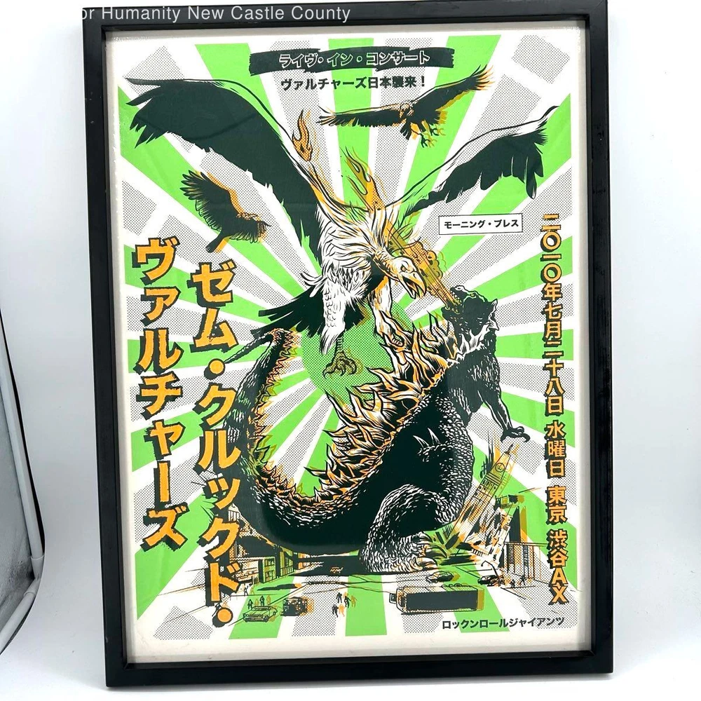 Them Crooked Vultures Shibuya Ax Tokyo Poster Framed Godzilla Grohl Condition Description: Good - shows some sign of wear Additional Details: Plexi Frame has some flaws see last two photos. Poster is in nice condition. 19x25 See photos for condition details.
