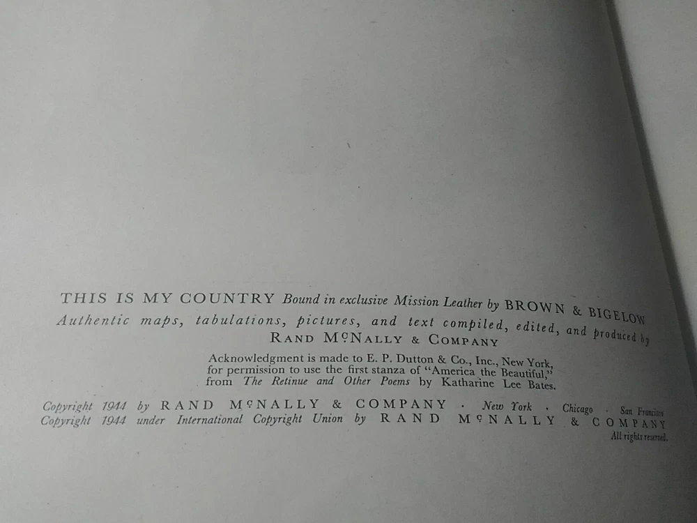 This Is My Country 1944 ~ Vintage Maps Rand McNally Mission Leather. Front cover is split and has a cotton filling. Otherwise the book is in very good condition.