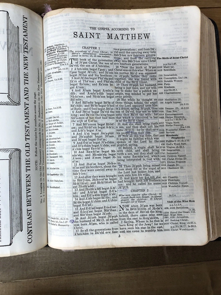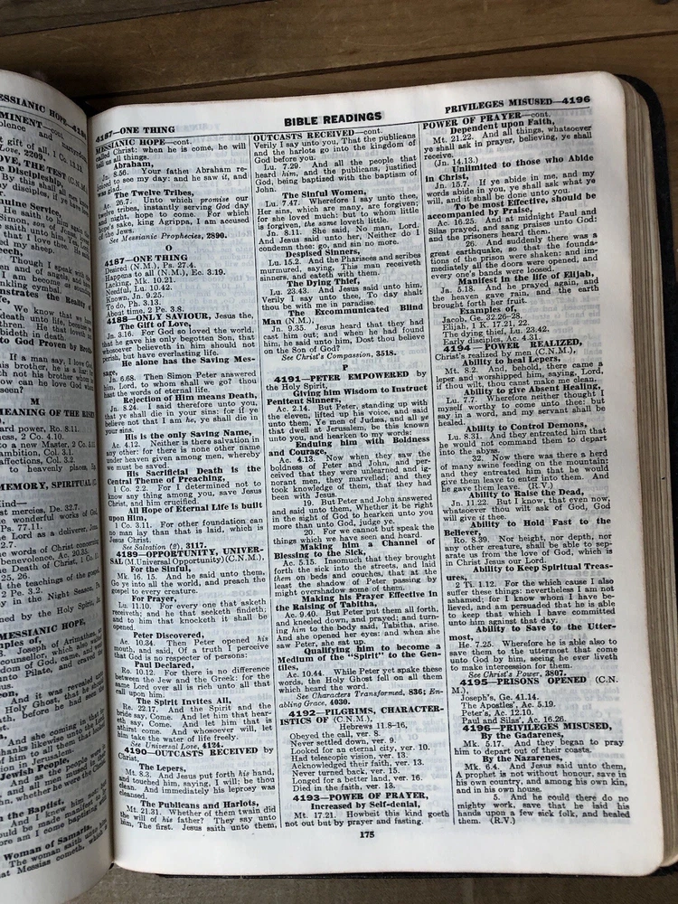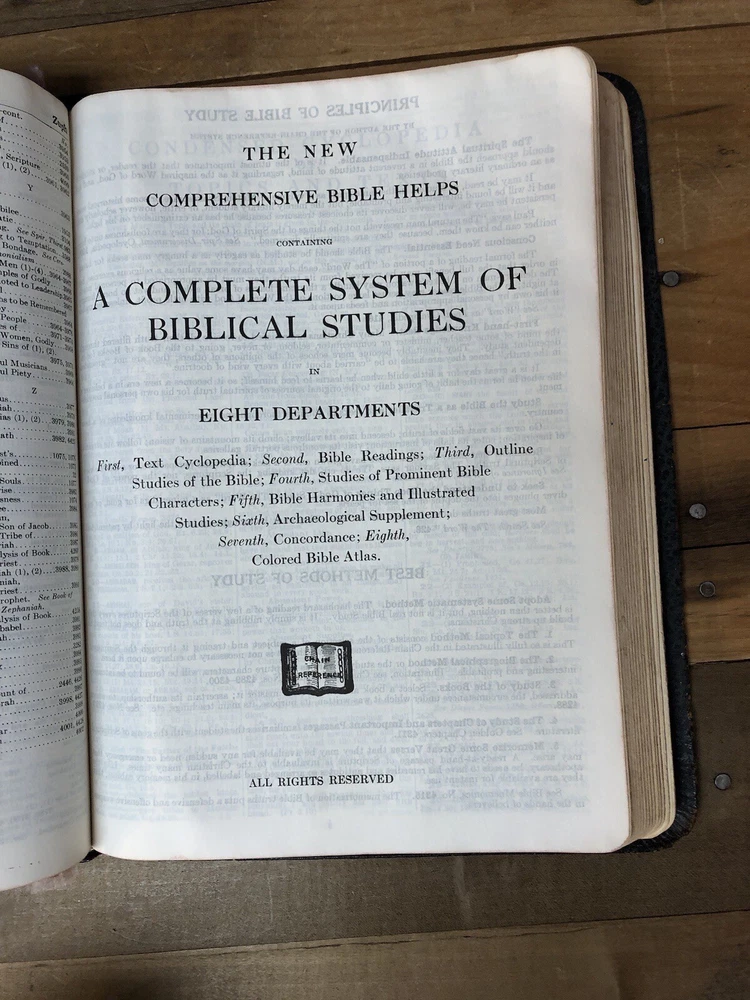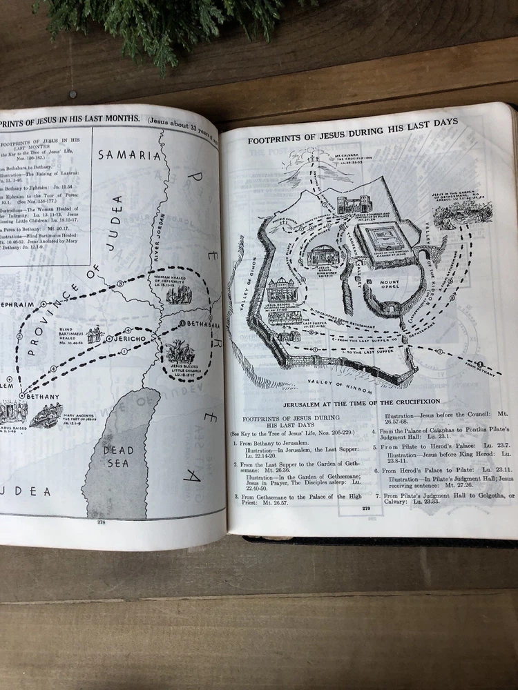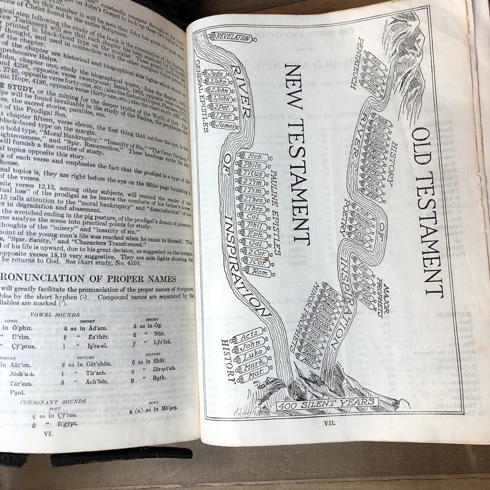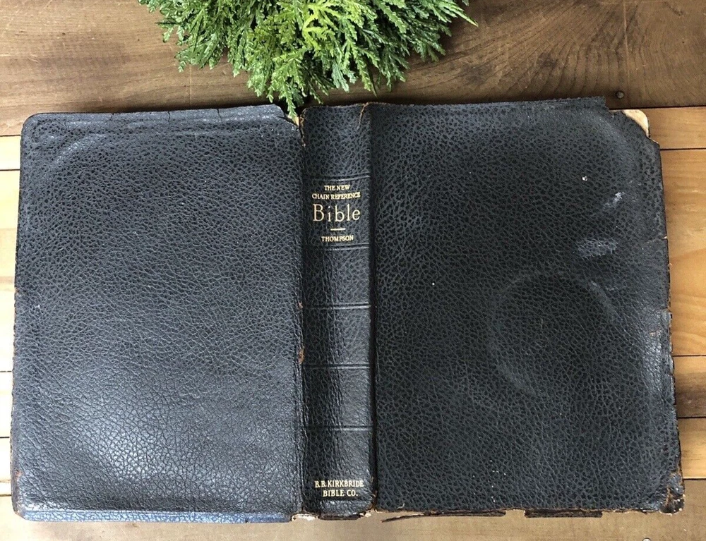 Thompson Chain Reference Bible KJV Maps Chart Studies Concordance Index AS IS Offering a vintage bible titled, "The New Chain-Reference Bible" as pictured. Condition notes listed below. Fourth Improved Edition copyright 1964 King James Version KJV includes maps, charts, character studies, concordance, cyclopedia, index and many more features weighs about 2# 10 oz without packing materials well used and worn copy leather binding is very worn, especially around edges writing and underlining throughout expect stains buying as is, as pictured, issues noted