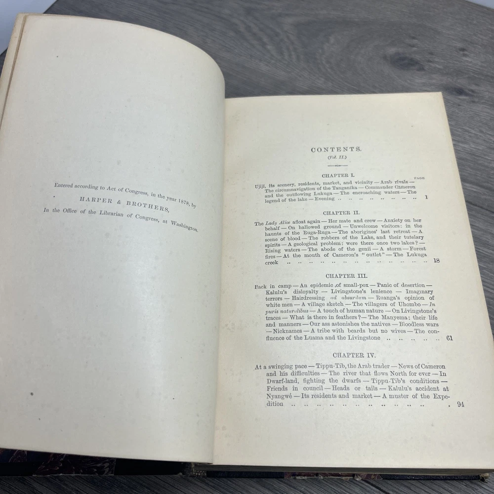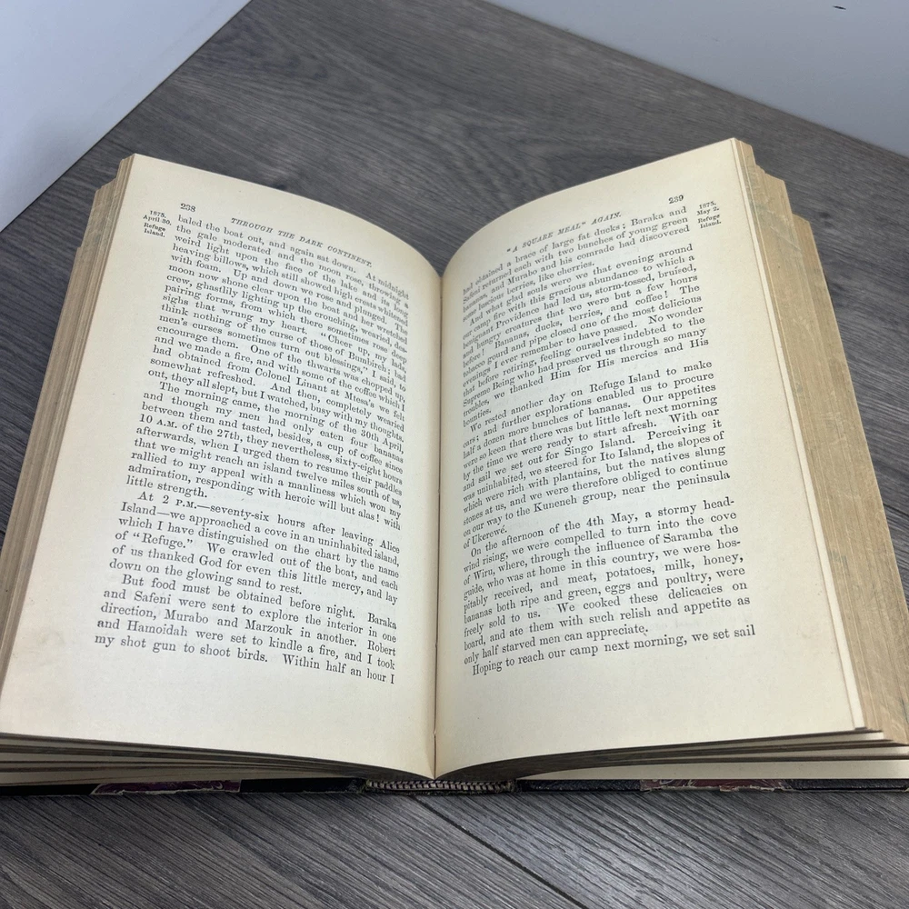 See photos for condition This antique book, "Through The Dark Continent" by Henry M. Stanley, is a rare find for collectors and enthusiasts of exploration and travel. Published in 1878 by Harper & Brothers in New York, this first edition book comes in a beautiful leather binding and is illustrated with maps. The book provides a fascinating insight into Stanley's journey through Africa and the challenges he faced during his expedition. It is a must-have for anyone interested in African exploration and travel, and a perfect addition to any antique book collection.