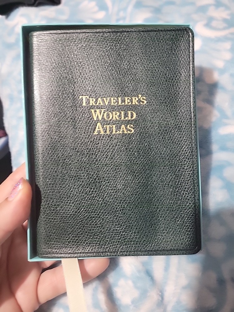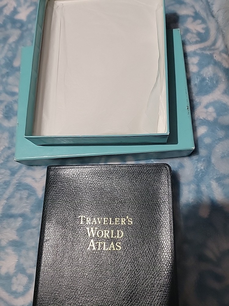 The Tiffany & Co Traveler's World Atlas is a luxurious and collectible item that features a green leather binding and gilded pages. This vintage atlas is a beautifully crafted piece that offers a unique glimpse into the world through its detailed maps and illustrations. Ideal for collectors or travelers, this timeless piece exudes elegance and sophistication, making it a standout addition to any collection. On Apr-15-25 at 10:14:03 PDT, seller added the following information: The 1997 Tiffany & Co Traveler's World Atlas is a luxurious and collectible item that features a green leather binding and gilded pages. This vintage atlas is a beautifully crafted piece that offers a unique glimpse into the world through its detailed maps and illustrations. Ideal for collectors or travelers, this timeless piece exudes elegance and sophistication, making it a standout addition to any collection.