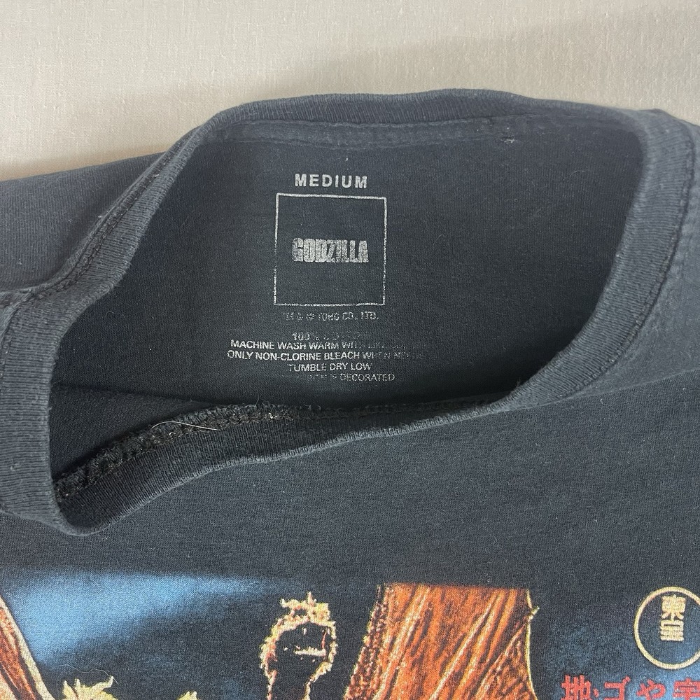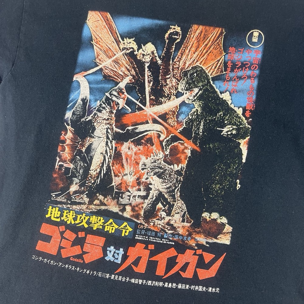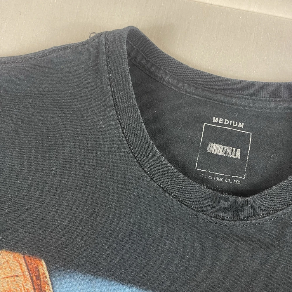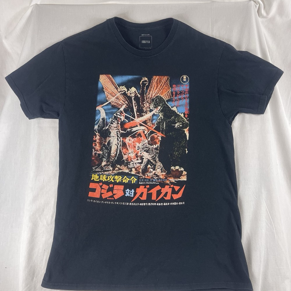 Minor stains as shown in the pictures. Show off your love for the classic monster with this Toho Godzilla Vs Gigan vintage movie poster size medium short sleeve t-shirt. Made of comfortable cotton material with easy care features, this crew neck t-shirt is perfect for any casual occasion. The solid black color and logo accents add a touch of style to this regular fit t-shirt, which is perfect for fans of the Godzilla franchise. The graphic print of the iconic movie poster makes this shirt a must-have for any collector. Whether you're a fan of the movies or the art, this t-shirt is a great addition to your wardrobe.