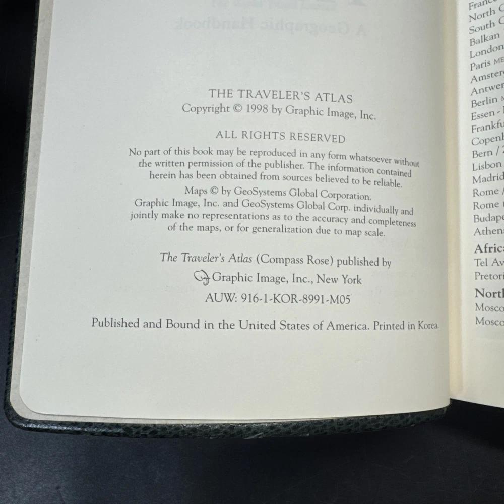 Explore the world from the comfort of your home with the "Traveler’s World Atlas" from 1998. This collector's edition is a must-have for both young adults and adults who have a passion for travel and geography. The atlas is beautifully leather bound and illustrated, making it an engaging read for anyone interested in learning more about different cultures and places around the globe.