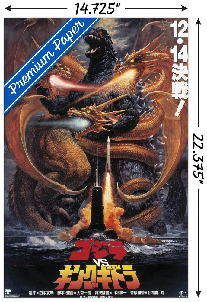 Trends International Godzilla - Godzilla vs King Gidorah (1991) Wall Poster, 14.725" x 22.375", Premium Unframed Version Product Details Size: 22.4L" x 14.7W" Color: Premium Unframed Version Brand: Trends International MPN: POD18440S UPC: 628217383046 EAN: 0628217383046 Product Dimensions: 22.4 x 14.7 x 0.2 inches Item Weight: 1.6 ounces Manufacturer: Trends International Country of Origin: USA Item model number: POD18440S Finish types: Glossy Number of pieces: 1 Batteries required: No This Trends Godzilla - Godzilla vs King Gidorah (1991) Wall Poster uses high-resolution artwork and is printed on PhotoArt Gloss Poster Paper which enhances colors with a high-quality look and feel HIGH QUALITY ART PRINT is ready-to-frame or can be hung on the wall using poster mounts, clips, push pins, or thumb tacks MADE IN THE USA and OFFICIALLY LICENSED PERFECT SIZE for any room; poster is 14.725" x 22.375" EASILY DECORATE any space to create the perfect decor for a party, bedroom, bathroom, kids room, living room, office, dorm, and more Trends International wall posters are everyone's favorite room decor! This Godzilla - Godzilla vs King Gidorah (1991) Wall Poster is created with high- resolution artwork and is printed on glossy poster paper which enhances the colors to make a bold wall decor statement in any room. Decorate the bedroom, bathroom, kid's room, living room, office, dorm, and more! Our art prints are lightweight and easy to hang using the included adhesive poster mounts that won't leave holes in your poster or damage your wall like nails, thumb tacks, or push pins. Every one of our premium posters are proudly Made in the USA. Add these decorations alongside the other accessories on your party supplies list too! Trends International's wall posters are the perfect way to dress up your parties. Poster bundles make great gifts as well! Whether it's for a birthday, Christmas, house warming or for your best friend, they'll love receiving a poster and mount bundle to show off their style.