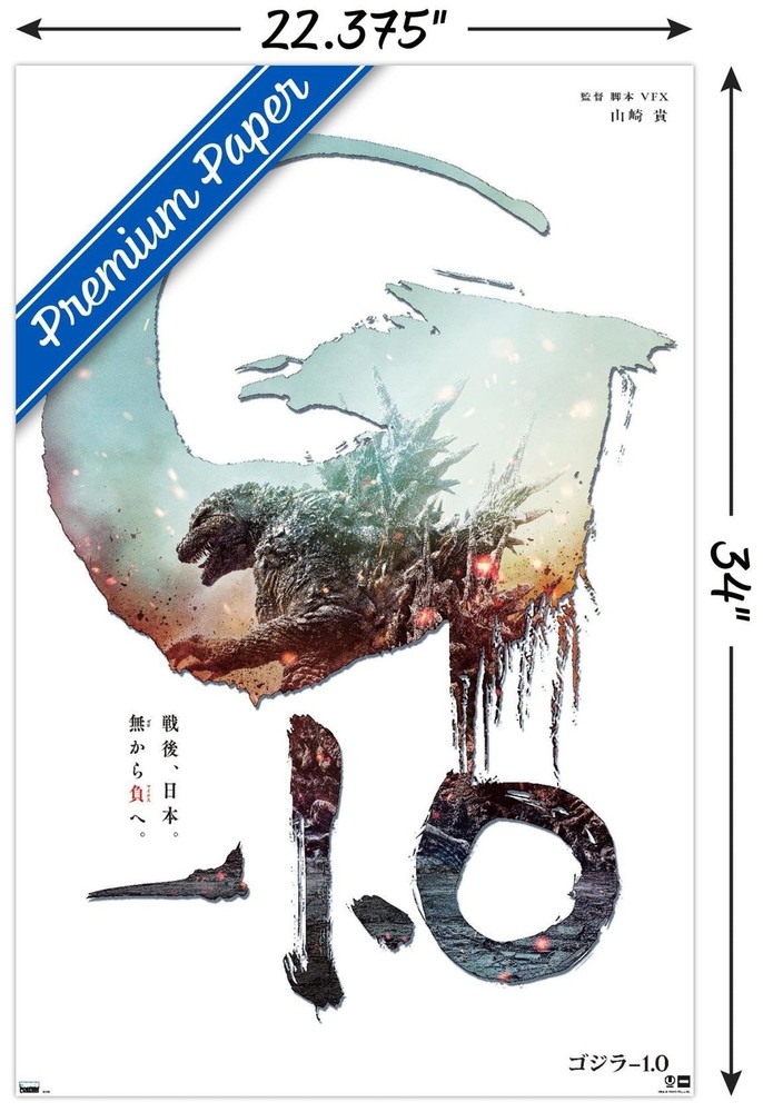 Trends International Godzilla: Minus One - Japan Teaser One Sheet Wall Poster, 34L x 22.4W, Premium Poster & Clip Bundle Product Details Color: Premium Poster & Clip Bundle Size: 34L" x 22.4W" Brand: Trends International UPC: 056628098738 EAN: 0056628098738 MPN: Does not apply Product Dimensions: 34 x 22.4 x 0.2 inches Item Weight: 7.8 ounces Manufacturer: Trends International Country of Origin: USA Number of pieces: 1 Batteries required: No This Trends Godzilla: Minus One - Japan Teaser One Sheet Wall Poster uses high-resolution artwork and is printed on PhotoArt Gloss Poster Paper which enhances colors with a high-quality look and feel Poster Hanger includes two 24" snap-to-close plastic rails; top piece includes hanging clips for mounting on the wall and the bottom piece keeps the poster flat by weighing it down Lightweight and easy to hang design allows for quick installation so you can enjoy your wall art immediately Easily decorate any space to create the perfect decor for a party, bedroom, bathroom, kids room, living room, office, dorm, and more Perfect size for any room; poster is 22.375" x 34" Trends International wall posters are everyone's favorite room decor! This Godzilla: Minus One - Japan Teaser One Sheet Wall Poster is created with high- resolution artwork and is printed on glossy poster paper which enhances the colors to make a bold wall decor statement in any room. Decorate the bedroom, bathroom, kid's room, living room, office, dorm, and more! Our art prints are lightweight and easy to hang using the included adhesive poster mounts that won't leave holes in your poster or damage your wall like nails, thumb tacks, or push pins. Every one of our premium posters are proudly Made in the USA. Add these decorations alongside the other accessories on your party supplies list too! Trends International's wall posters are the perfect way to dress up your parties. Poster bundles make great gifts as well! Whether it's for a birthday, Christmas, house warming or for your best friend, they'll love receiving a poster and mount bundle to show off their style.