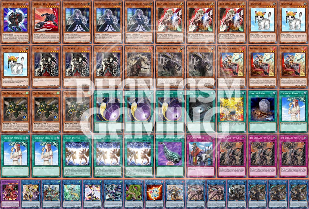 Deck Name: Tri-Brigade (Bird-Up) (C) # Main Deck (40) 1 - Destiny HERO - Celestial 1 - Destiny HERO - Dasher 3 - Ghost Belle & Haunted Mansion 3 - Ghost Ogre & Snow Rabbit 3 - Rescue Cat 3 - Skull Meister 1 - Tri-Brigade Fraktall 2 - Tri-Brigade Kerass 3 - Tri-Brigade Kitt 3 - Tri-Brigade Nervall 3 - Cosmic Cyclone 1 - Dark Hole 1 - Fire Formation - Tenki 1 - Foolish Burial 3 - Forbidden Chalice 3 - Fusion Destiny 1 - Harpie's Feather Duster 1 - Imperial Order 3 - Tri-Brigade Revolt # Extra Deck (15) 1 - Destiny HERO - Destroyer Phoenix Enforcer 1 - Accesscode Talker 1 - Ancient Warriors Oath - Double Dragon Lords 1 - Apollousa, Bow of the Goddess 1 - Harpie Conductor 1 - Hraesvelgr, the Desperate Doom Eagle 1 - Predaplant Verte Anaconda 1 - Salamangreat Almiraj 1 - Tri-Brigade Bearbrumm the Rampant Rampager 2 - Tri-Brigade Ferrijit the Barren Blossom 1 - Tri-Brigade Rugal the Silver Sheller 3 - Tri-Brigade Shuraig the Ominous Omen You will receive all of the following cards listed above. Most cards will will be in near mint condition. In the case of certain older cards we will do our best but some cards may be light or even moderatly played in extreme condtions. Those conditions being the card has not been reprinted in a number of years and con no longer be easily purchased in light or near mint condition. Set, Rarity, and Edition will vary and cannot be special requested. These lists are constructed with least expensive rarities we have available in stock. All cards are play legal copies. Note: If purchasing a Yugioh Deck all Speed duel cards are 100% legal at all levels of play. Store Policies Here at PMG_LLC , we pride ourselves on having the best customer service around. If you have any questions or can't seem to find something that you want please do not hesitate to contact us. We will do our best to respond to all questions within one business day. Hours of Operation: Monday-Friday: 2:30pm - 10:00pm Saturday- 10:00am - 8:00pm Sunday 11:00am - 5:30pm Note: We are closed all national holidays. Info: Thank you for choosing PMG_LLC . We appreciate your business. We ship Monday through Friday to make sure you get your deck as quickly as possible. All orders priority orders can use combined shipping. In order to use the combined shipping your whole purchase needs to be checked out as one order. We ship once we have received your payment and payment has cleared. As always if you have any questions or concerns please feel free to contact us via email. Shipping Information: We ship Monday through Friday, barring national holidays during which the United States Postal Service is closed. If you purchase a card on Friday or Saturday please bear in mind it will not ship until Monday. US Shipping: First Class Mail : Free. Comes with tracking information. Priority Mail with Delivery Confirmation : $9.99 All orders are shipped in appropriate protective material inside bubble mailers. International Shipping: We do not offer international Shipping Return Policy: You must return items sold and fulfilled by PMG_LLC within 30 days of delivery to be eligible for a refund. Returns which are damaged in the mail due to improper return packaging will receive partial refunds. We will process a full refund for all items returned in their original condition. In order for us to process your full refund you must include the full name associated with the order as well as the eBay order number inside the return packaging. We will not process returns which do not include the buyer's name and order number. Requirements: Please return items with the original plastic packaging. Failure to do so may result in a partial refund. Also you must inform us of any returns you may wish to process before sending them back. Any items simply send back to us without prior contact will not be eligible for refunds. Important Notes Remember that to benefit from our domestic combined shipping on priority orders you must to pay in a single payment. If you place two separate priority orders you will be charged the $7.50 shipping fee for both orders. If you place multiple orders for Priority shipping you will be charged the corresponding shipping costs for each order, even if you place the orders on the same day. We do not refund shipping costs as we tend to package orders throughout the day and may not notice that you would otherwise have qualified for combined shipping. We want to provide you with 5 Star service and earn your Positive Feedback, so if for any reason you are not happy with your transaction, contact us before leaving feedback. Business Day - Our business day runs from Monday to Friday from 9am to 4pm, excluding US national holidays. Any orders placed or payments cleared less than 4 hours before the close of business will be considered orders from the following business day.