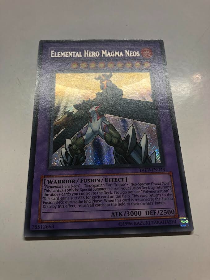 =====You are Getting===== USA Seller Yugioh Elemental Hero Magma Neos TAEV-EN043 Secret Rare VLP =====Shipping===== We also do combined shipping for all the items you buy from us! We will do our best to ship all the items within 2 business days after payment is received and we will double check before we send. Please double check your address to prevent any unnecessary delay. ===Others=== Please contact us if there are any questions or problems. We will try our best to respond as fast as possible. Please leave us positive feedback and we will leave you feedback too once we receive feedback from you. If there are anything that you are not satisfied with your purchase, please do not hesitate to give us a message. We strive to make great communication with our buyers. Happy buying or bidding!! Thank You!!